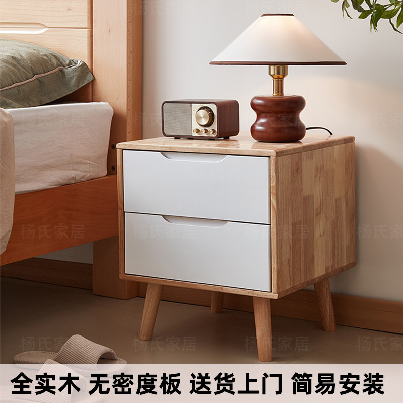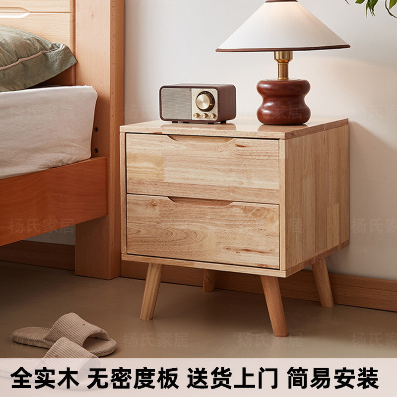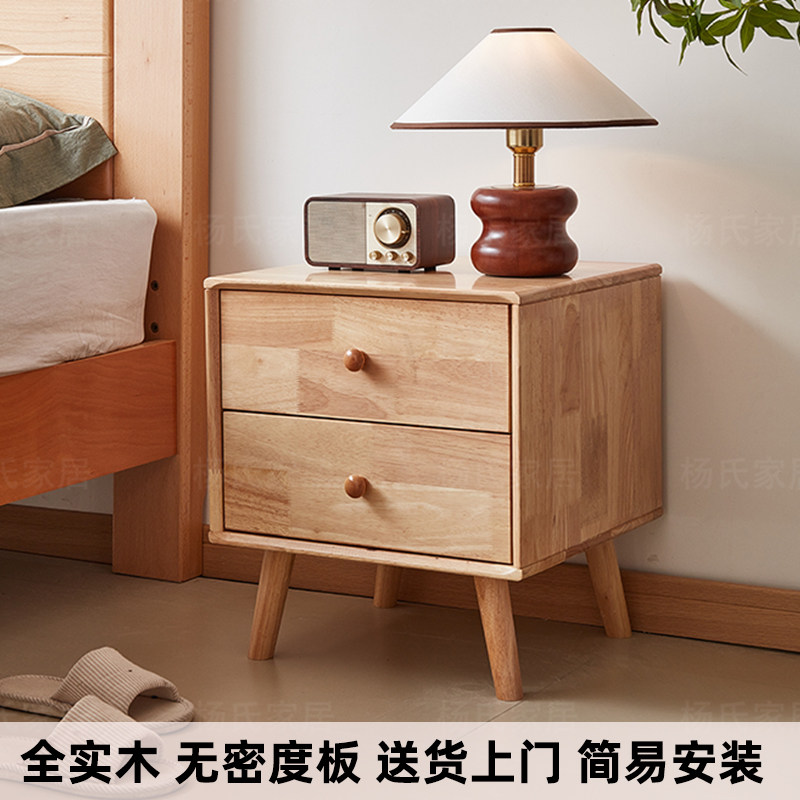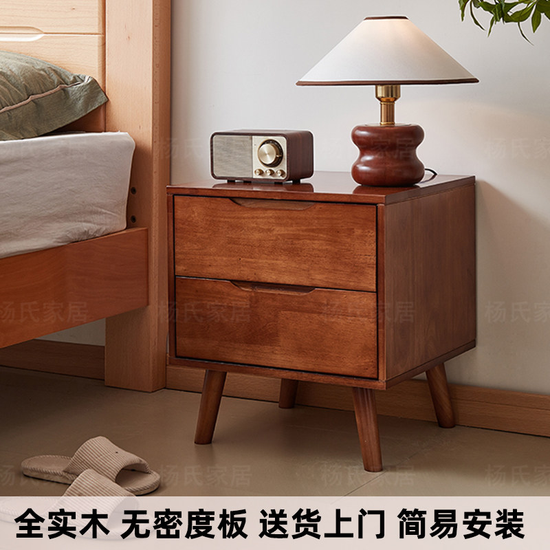 全实木床头柜简约现代橡胶木北欧胡桃原木卧室收纳整装迷你储物柜