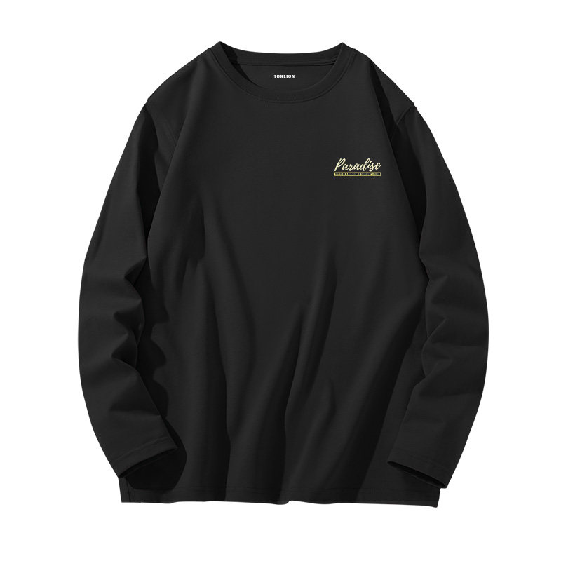 唐狮男士纯棉内搭打底衫春秋新款黑色美式重磅宽松男生长袖t恤YB
