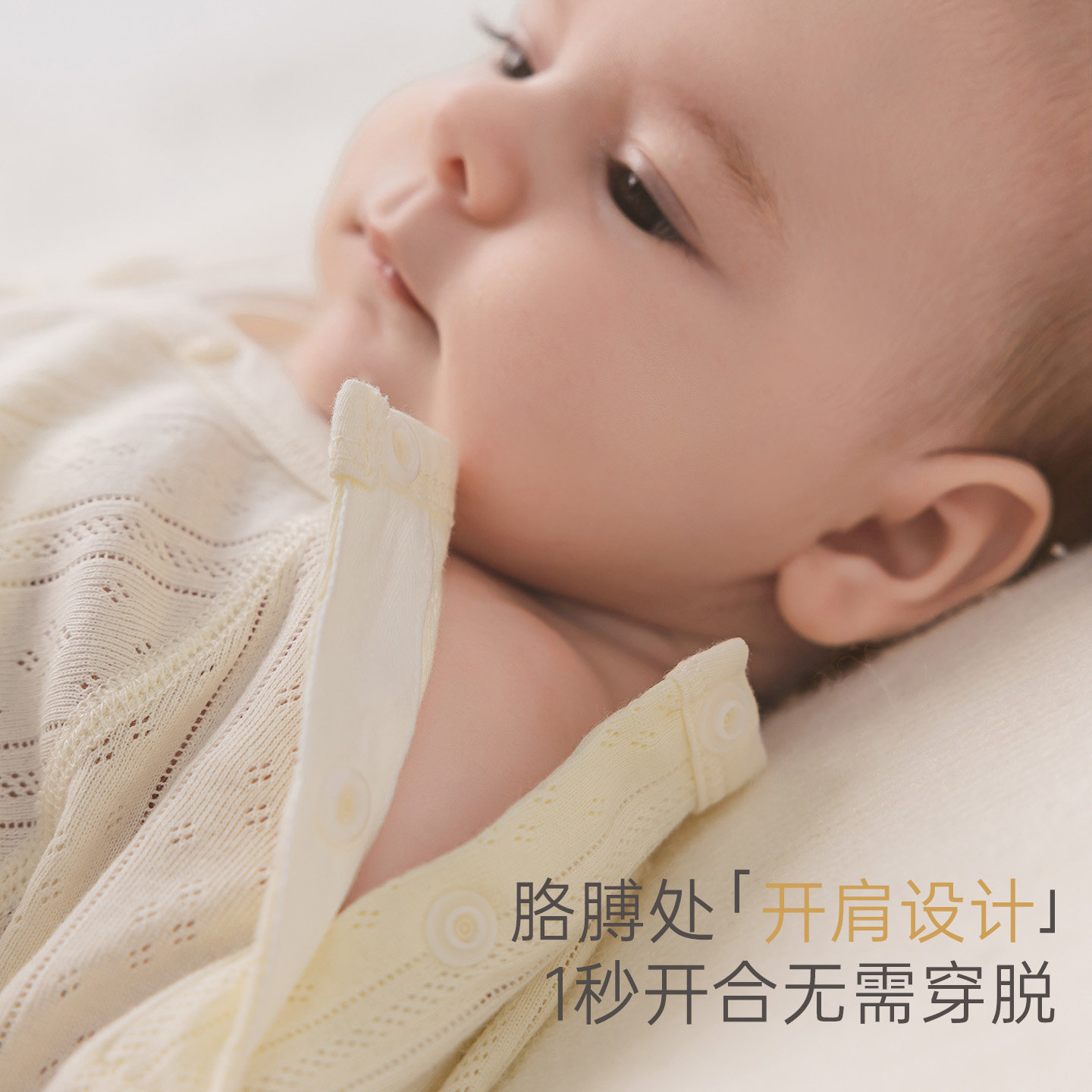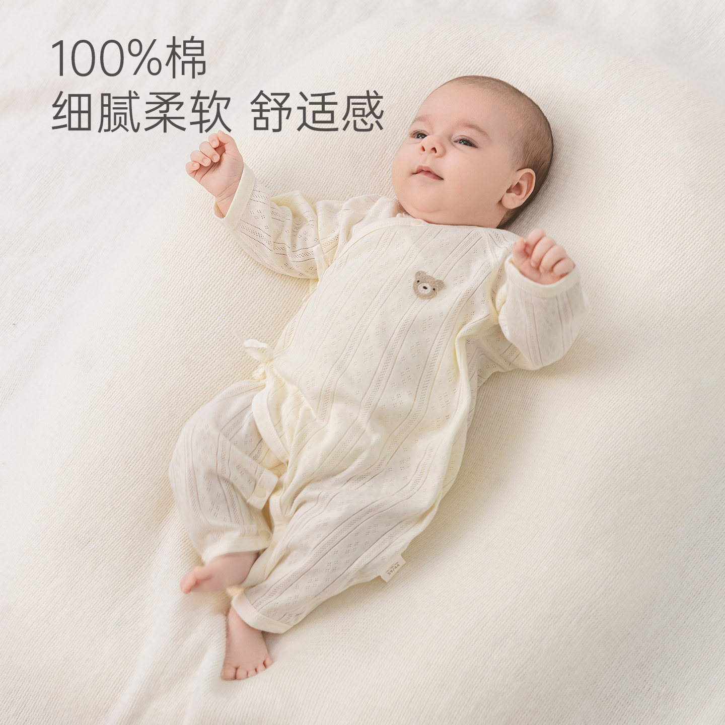 易苗款 木生棉0-6个月新生儿绑带连体衣春秋婴儿宝宝纯棉哈衣夏季