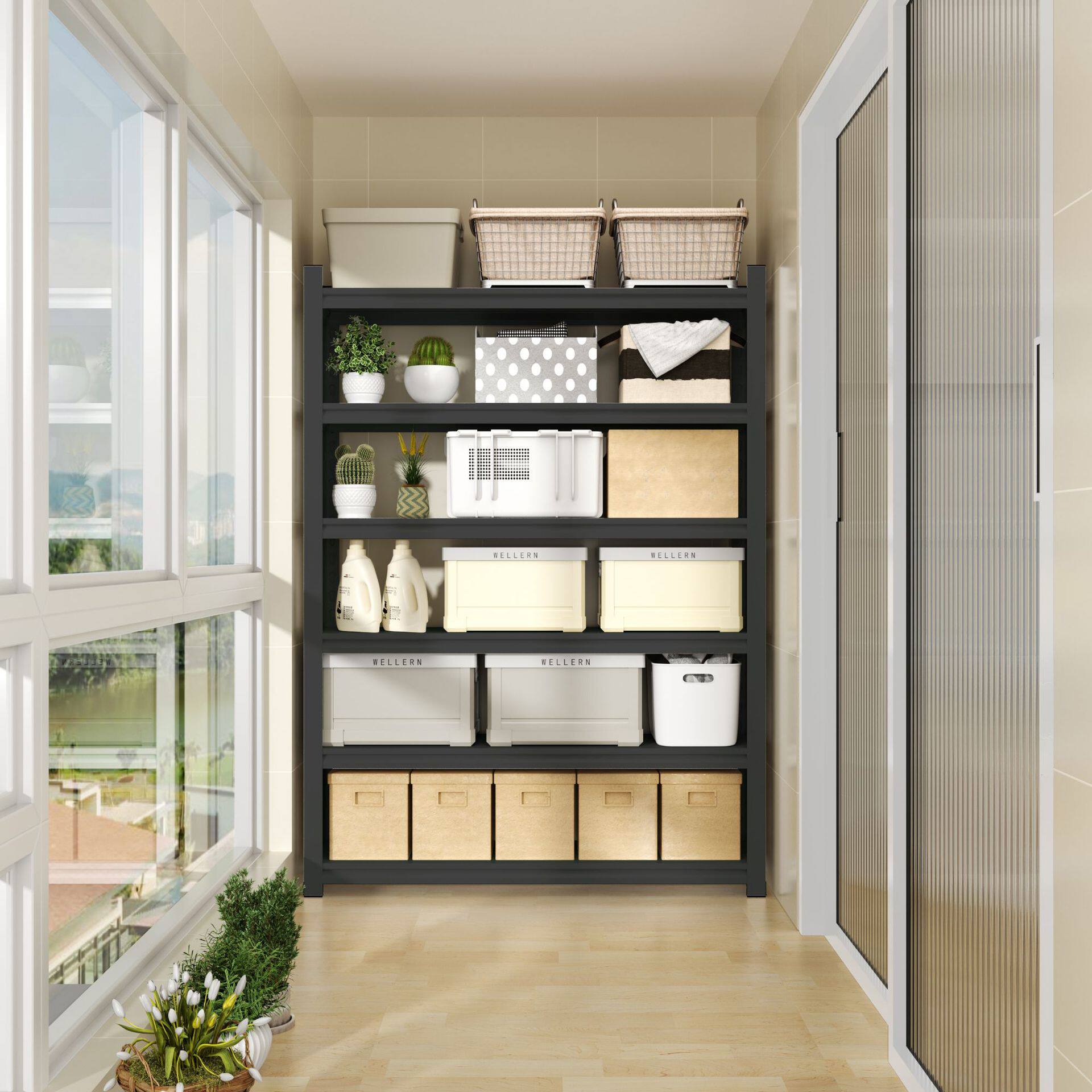 阳台收纳碳钢置物架多层储物柜家用落地花架收纳架储物间架子加厚