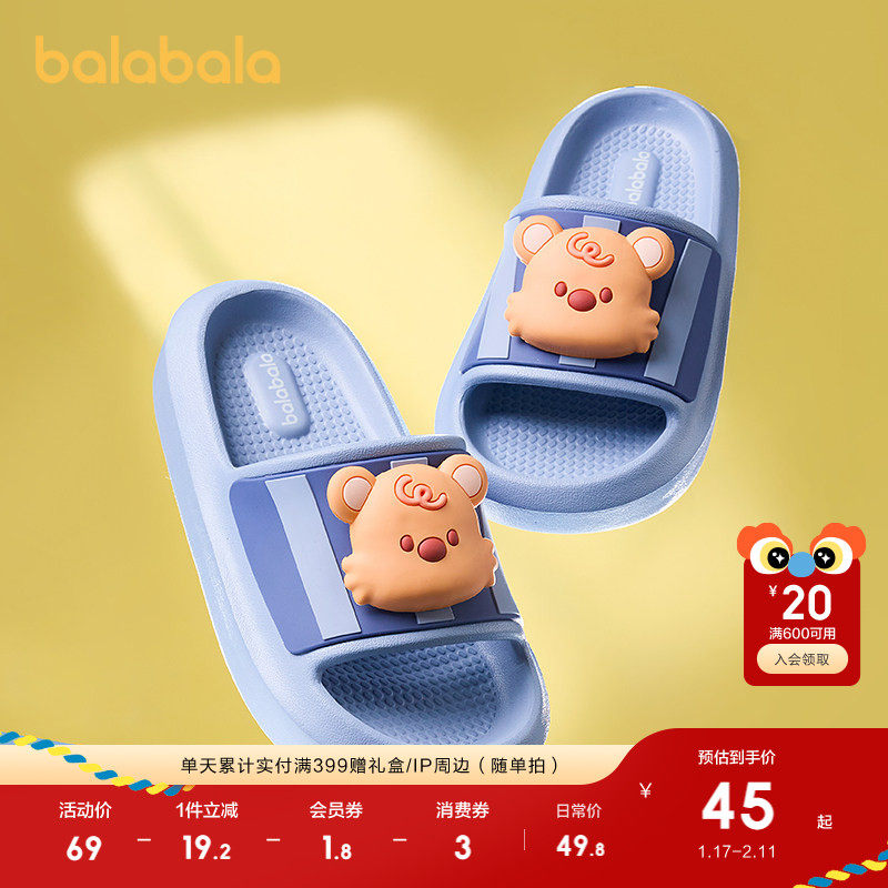 巴拉巴拉童鞋儿童拖鞋浴室家居鞋男童女童卡通软凉拖2025夏季新款