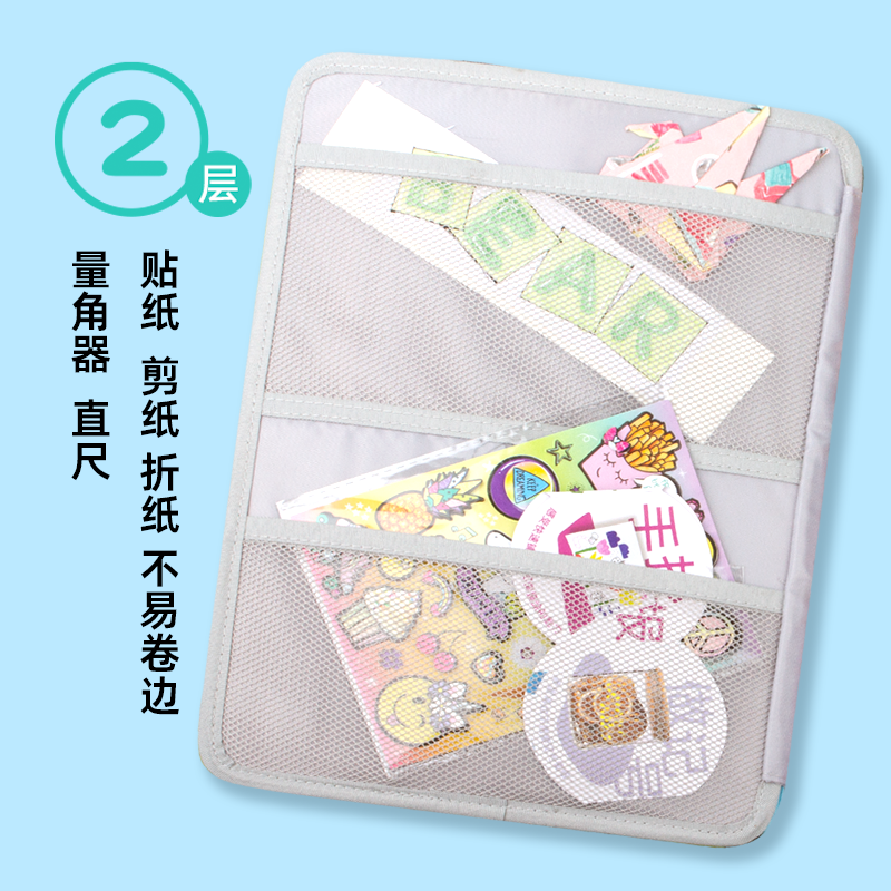 NATAMI奈多美180度平放美术袋马克笔手工课蜡笔彩铅袋小学生美术收纳课本网纱半透明可水洗美术手提袋美术包