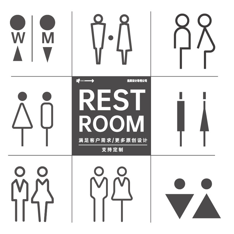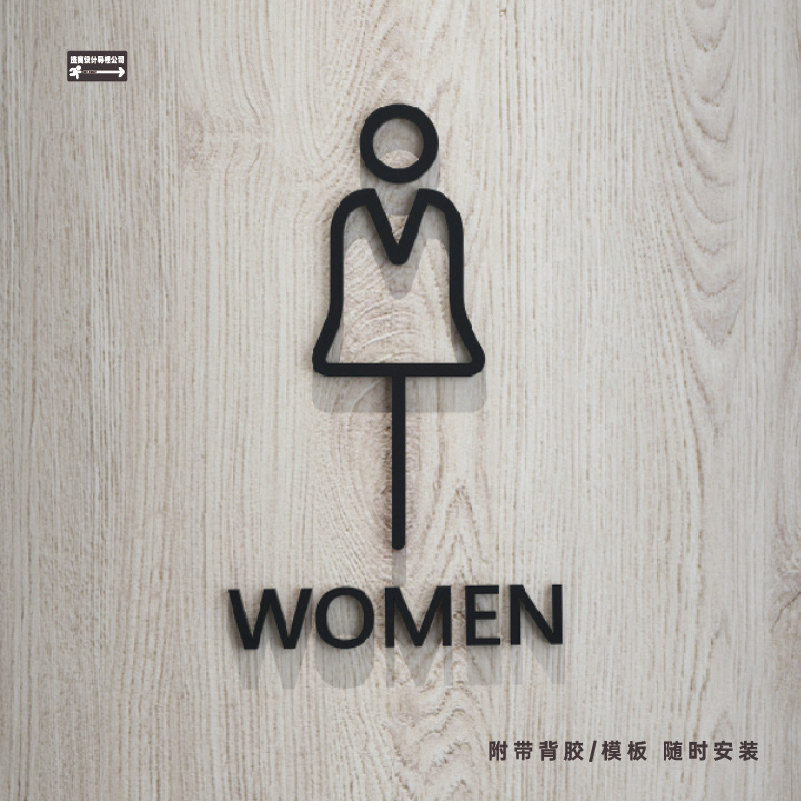 简约日系男女WC厕所卫生洗手间公司商场铭牌标识温馨提示牌定制做