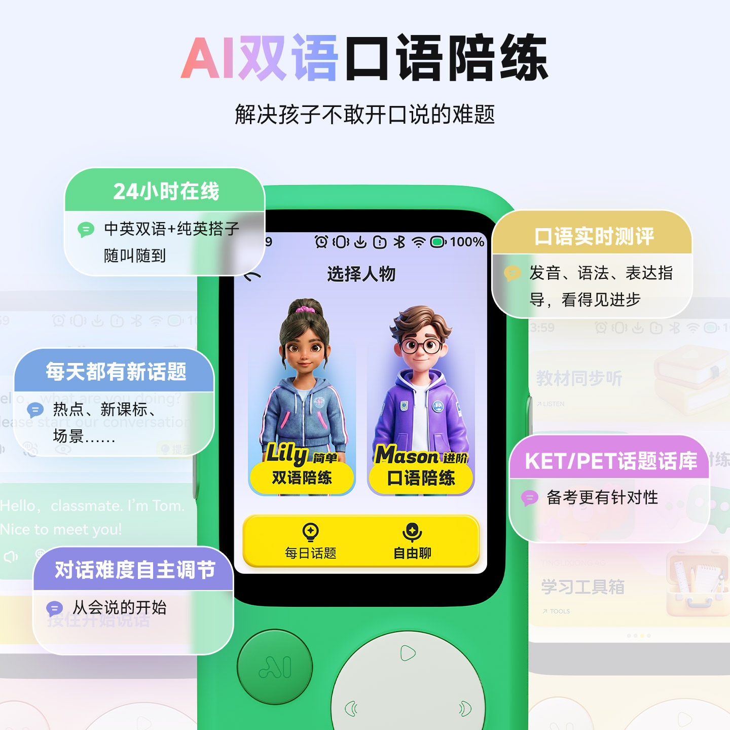 听力熊T8PRO可通话可联网AI随身学习机T8pro复读机小初高学习神器英语自主学习神器可打电话可定位故事机