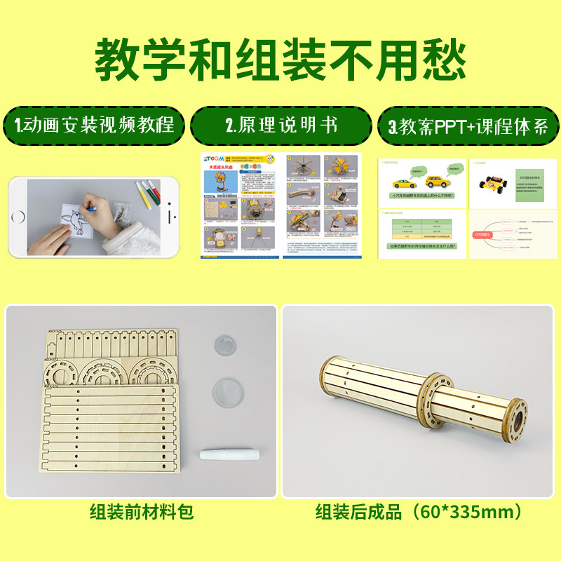 科学手工自制望远镜木质手工制作科学小实验器材儿童物理教学仪器