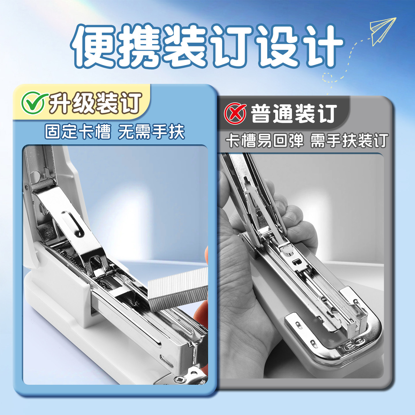 可旋转订书机中小学生可订中缝加厚订书机订作业本办公通用订书器