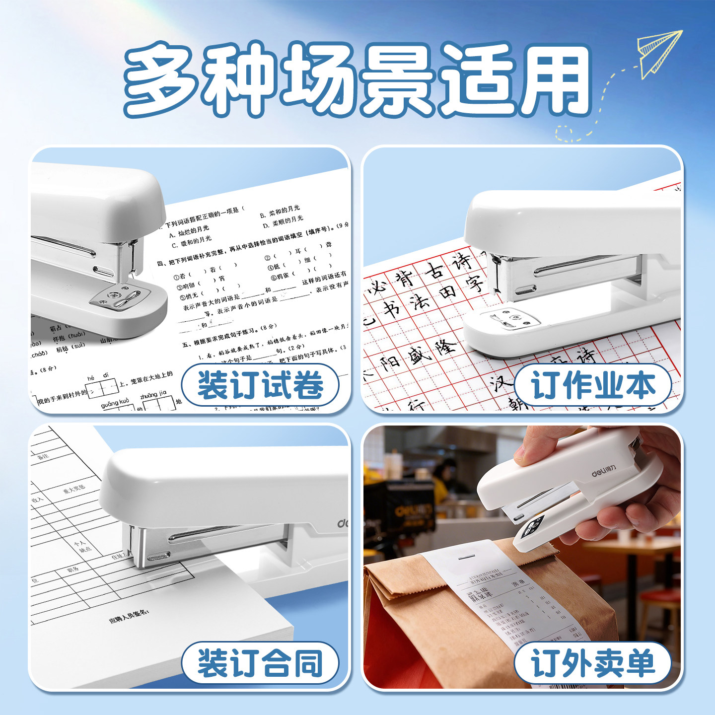 得力订书机学生用办公家用马卡龙色多功能大号文具订书器装订机家用钉书机订书钉省力12号订书机办公用品学生
