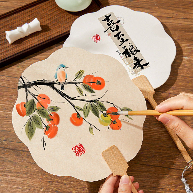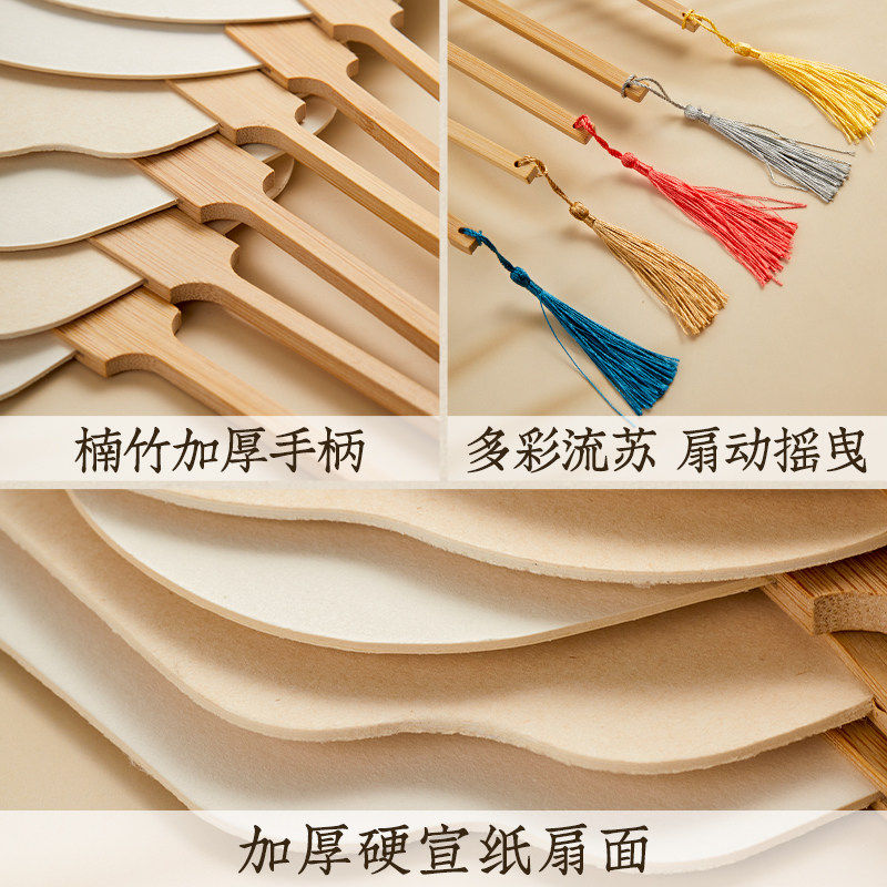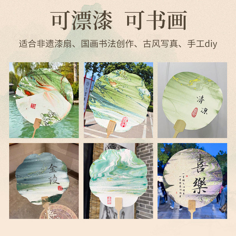 加厚团扇空白扇面六品堂宣纸漆扇古风扇子diy材料包制作书法纸扇