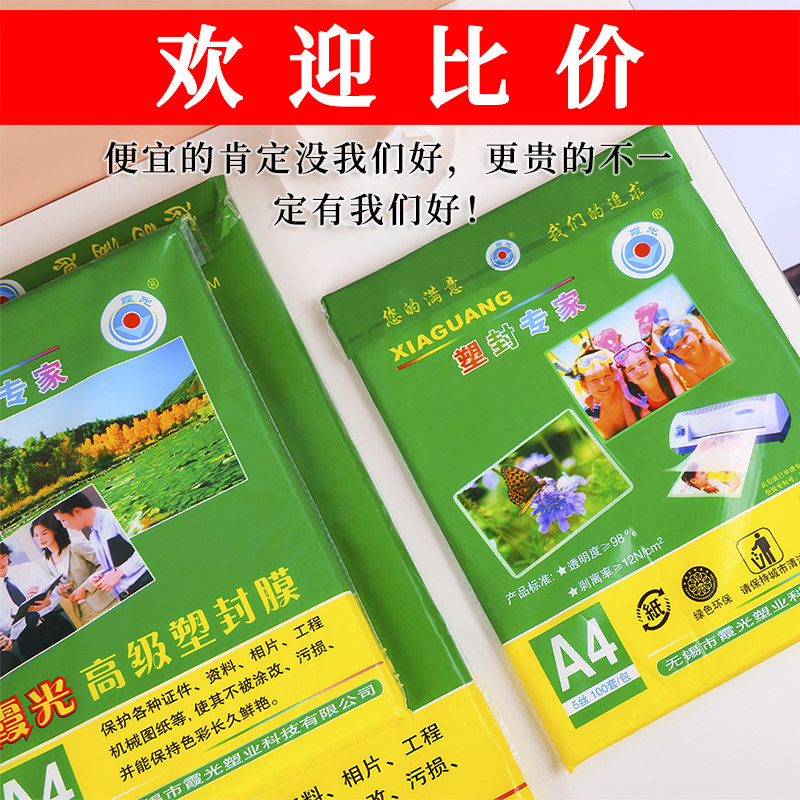 霞光A4 17.5丝20丝25丝厚塑封膜 过塑膜A4护卡膜 A4封塑膜 塑封机耗材包邮透明加厚塑封照片文件