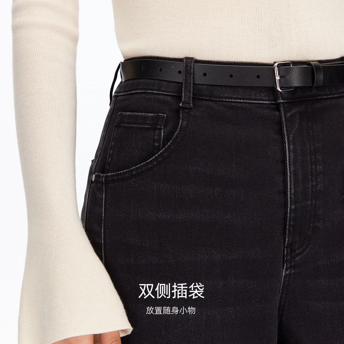 twosweet【超级裤神】四面弹重塑大长腿高腰直筒微喇叭原色牛仔裤