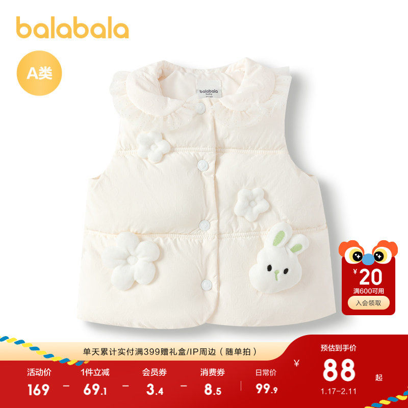 巴拉巴拉宝宝马甲外穿婴儿夹棉背心冬装加厚保暖萌趣可爱简约气质