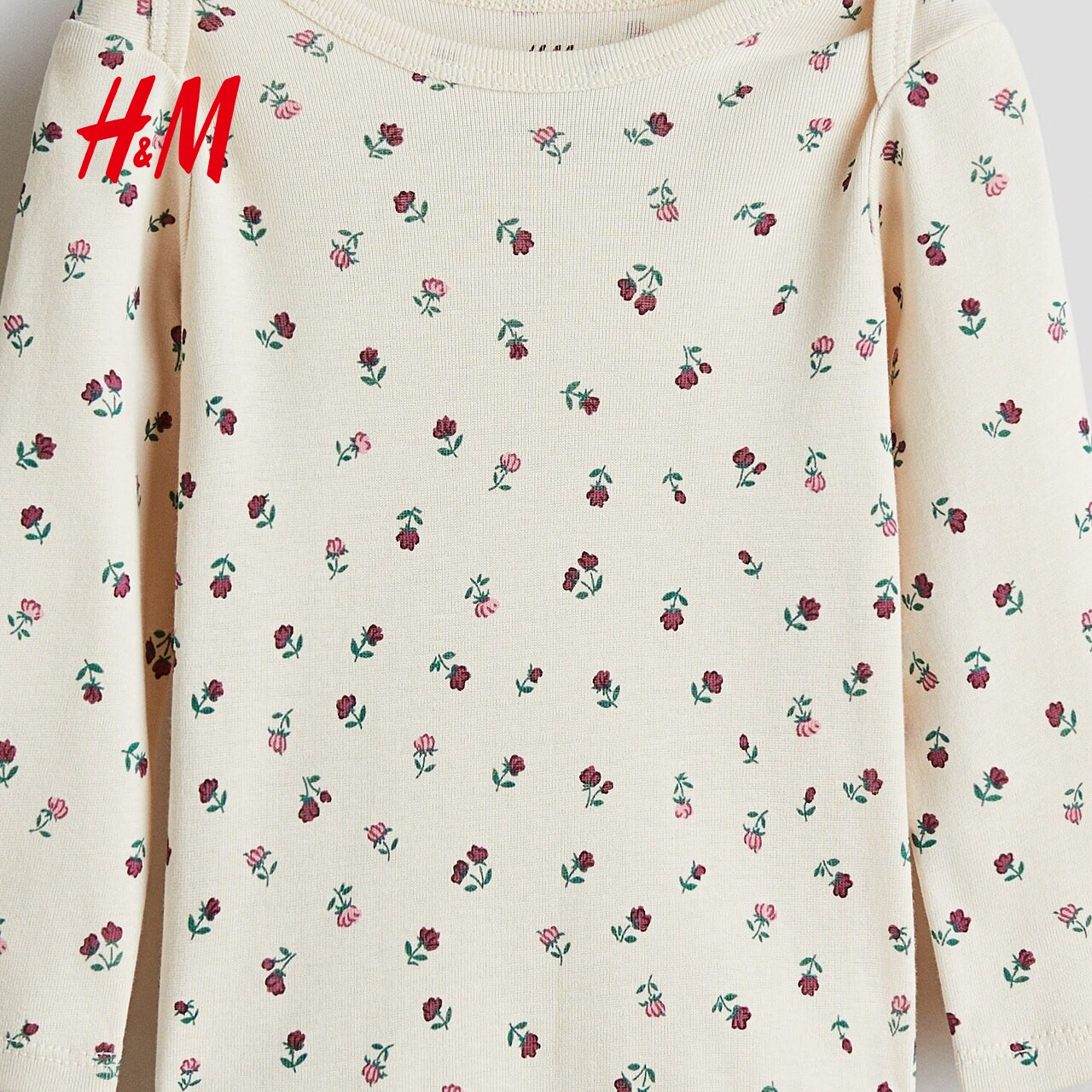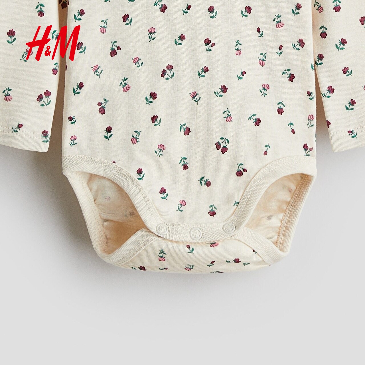 HM童装女婴连身衣春季长袖内着印花信封领哈衣1259195