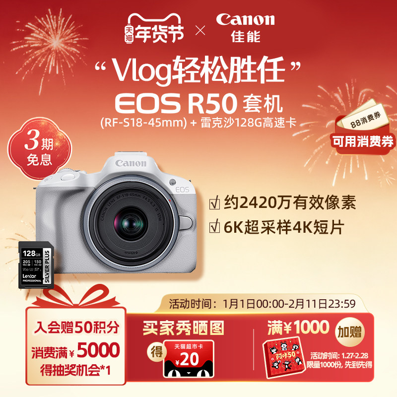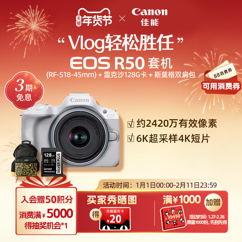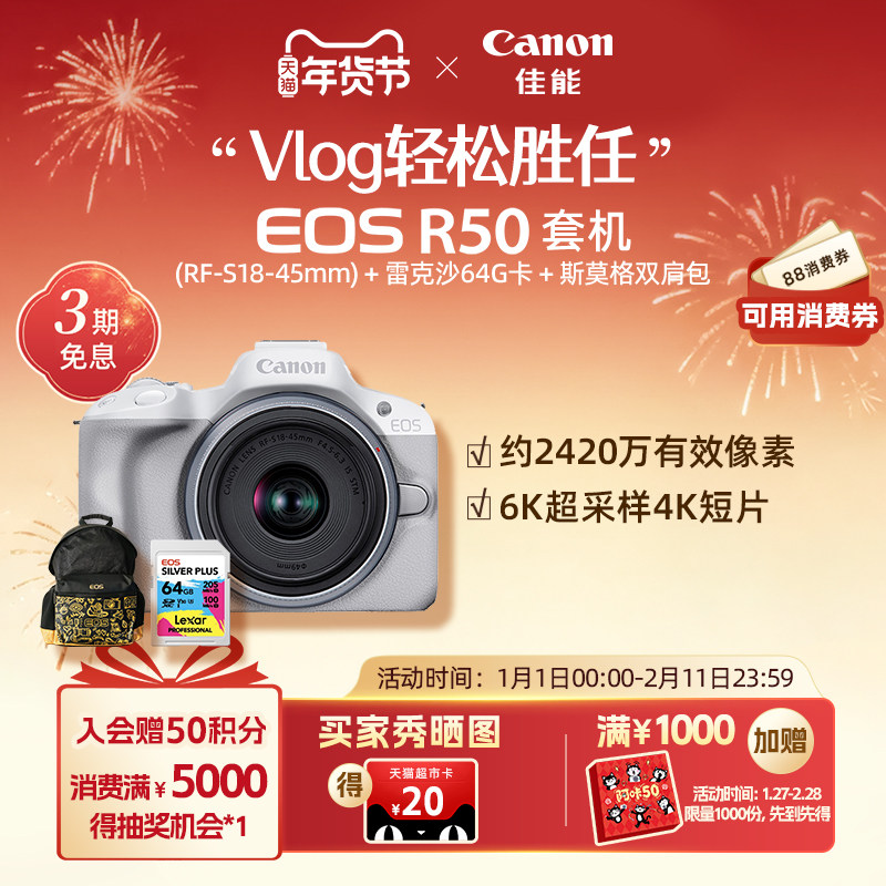 [旗舰店]Canon/佳能 EOS R50 机身/套机 微单入门女生新手相机
