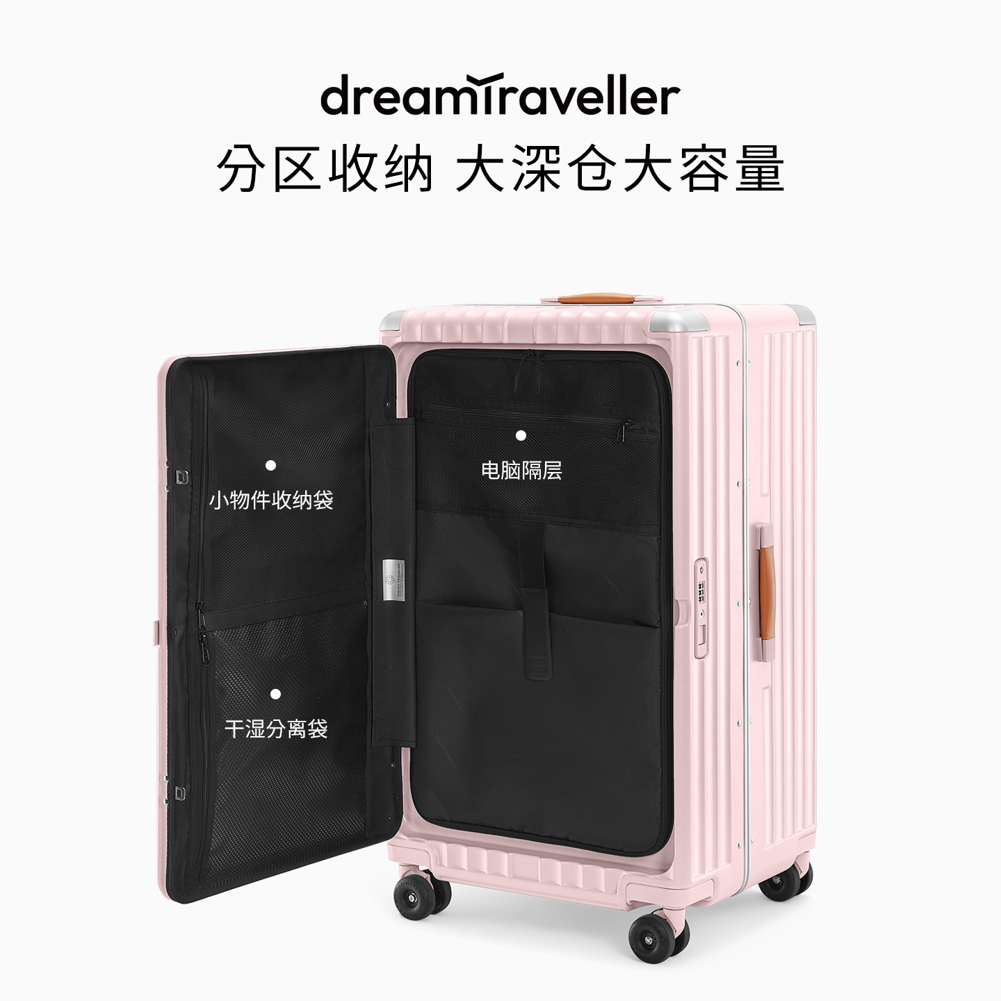 梦旅者侧开盖行李箱大容量旅行箱多功能出国拉杆箱登机密码箱男女