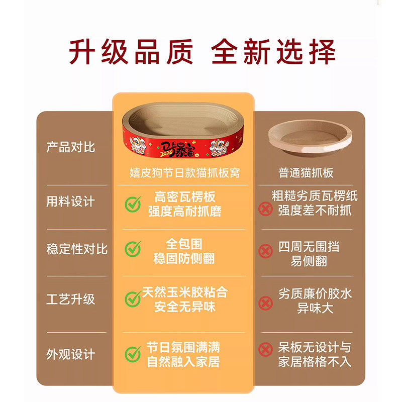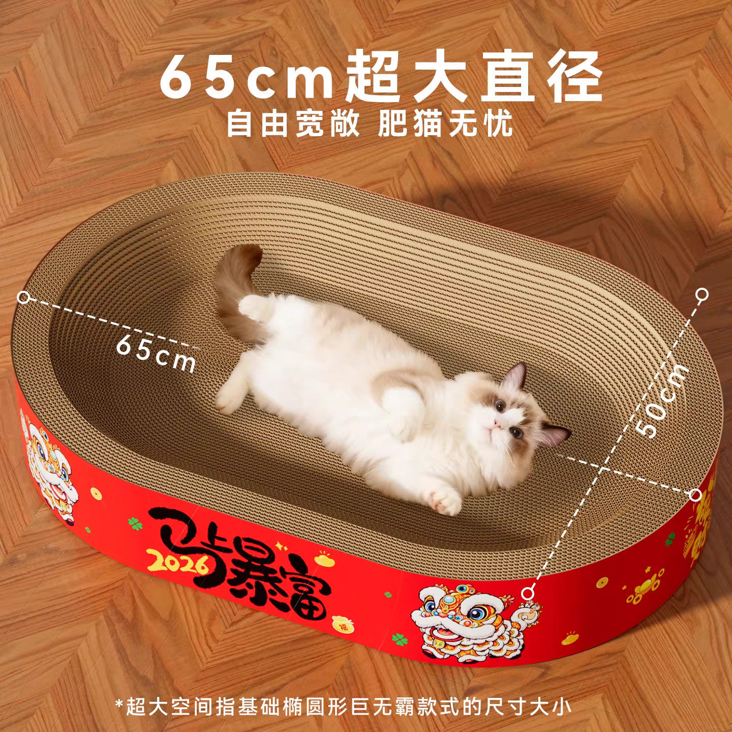 瓦楞纸猫抓板猫窝四季通用椭圆耐抓不掉屑高密度猫爪板马年新年款