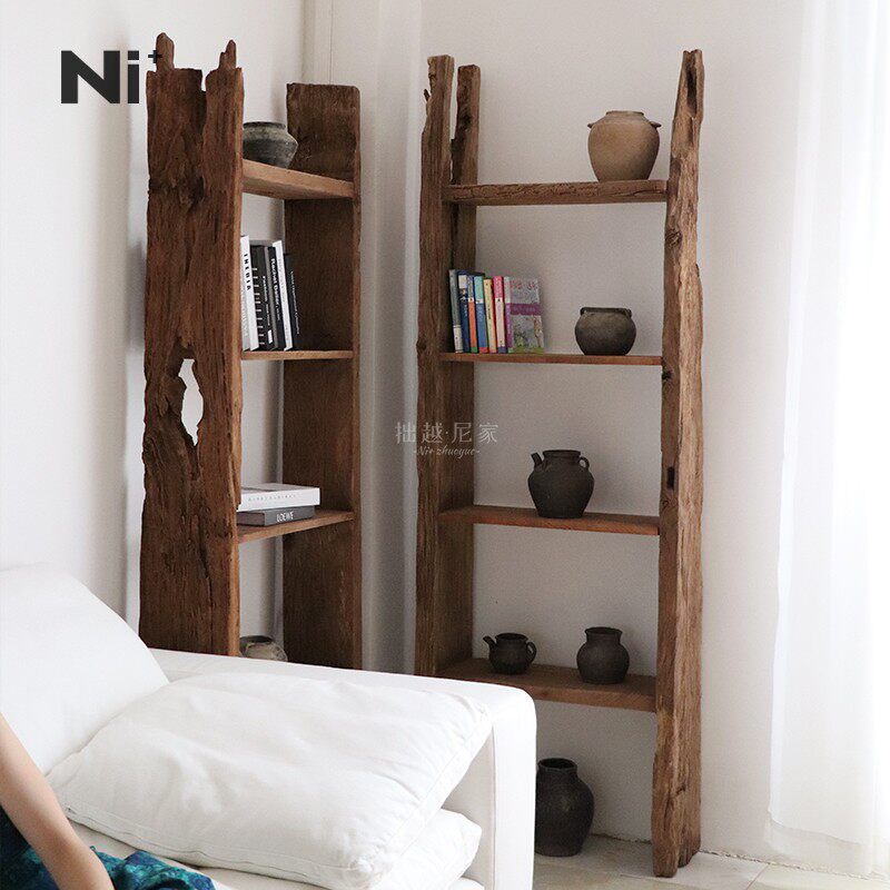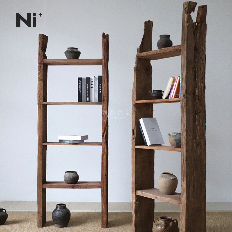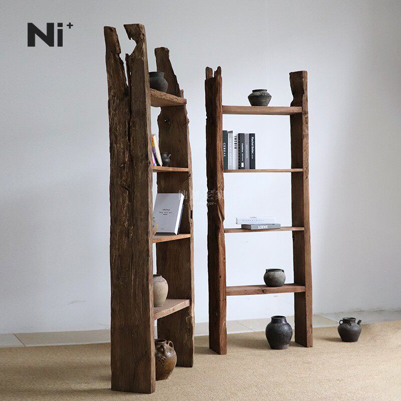 Ni尼家侘寂风实木博古架老木展示书架中古茶室家具茶杯收纳置物架