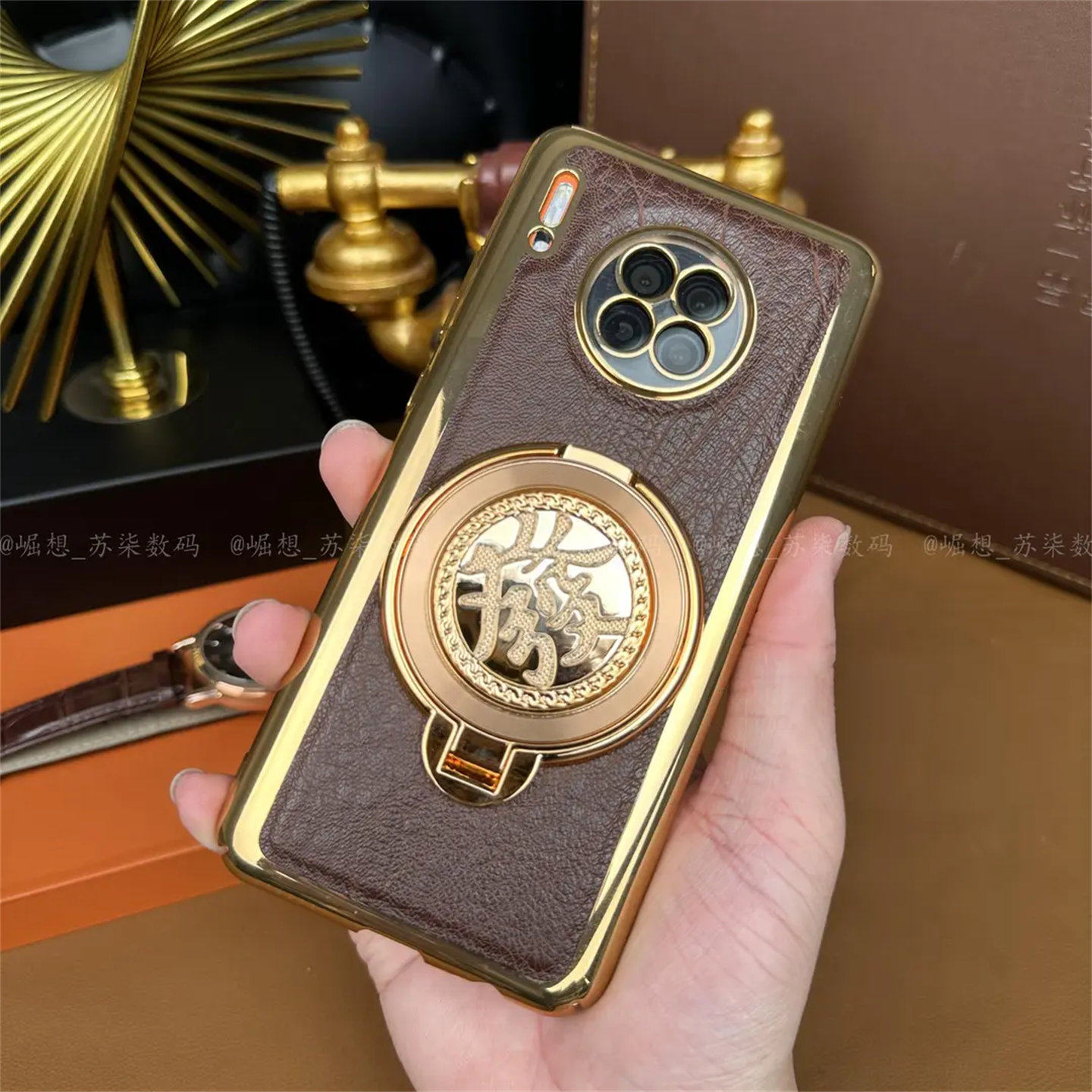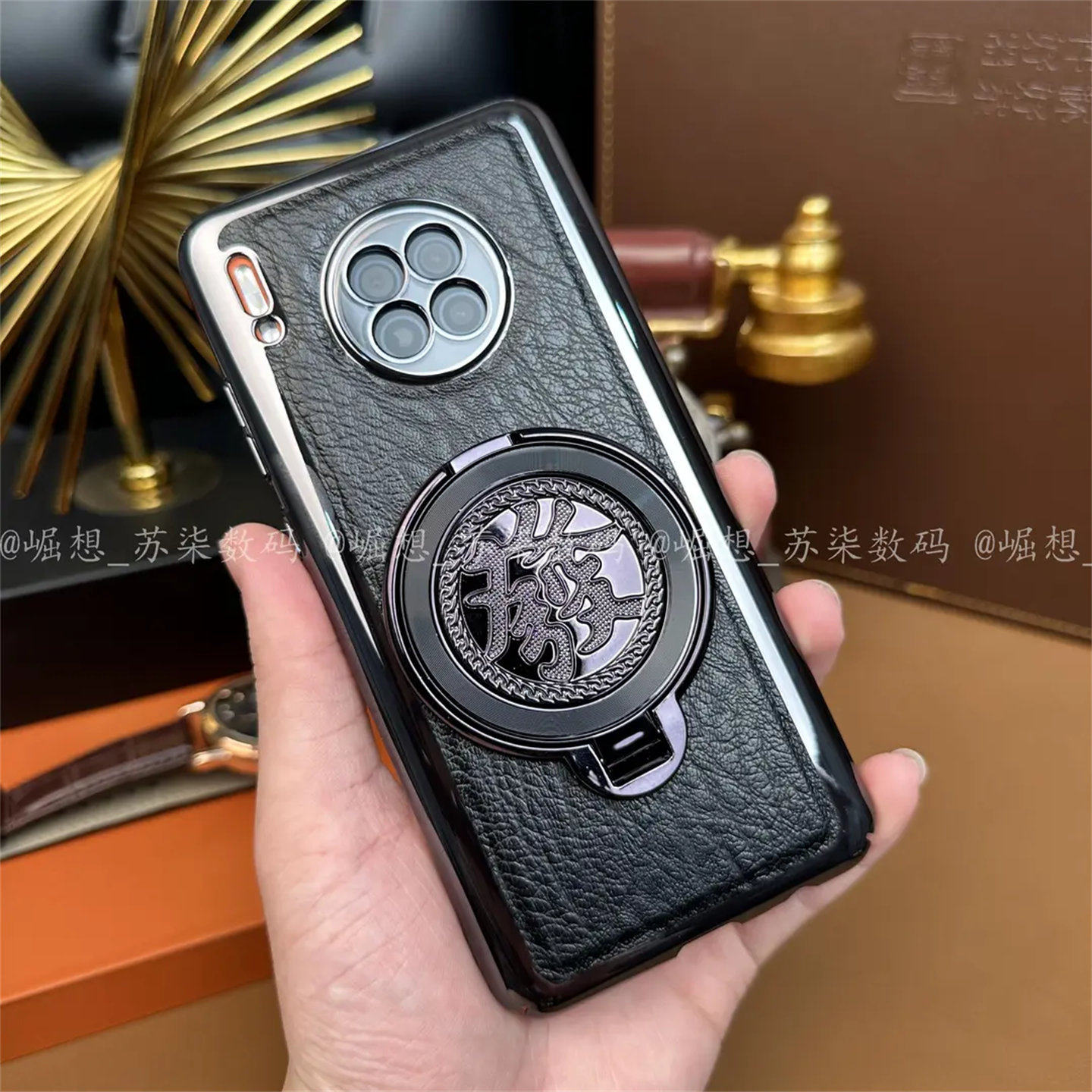 【發财陀螺支架+高档鳄鱼纹】适用华为Mate30Pro手机壳mate30轻薄防摔商务曲面屏全包防摔mae40手机套50外壳