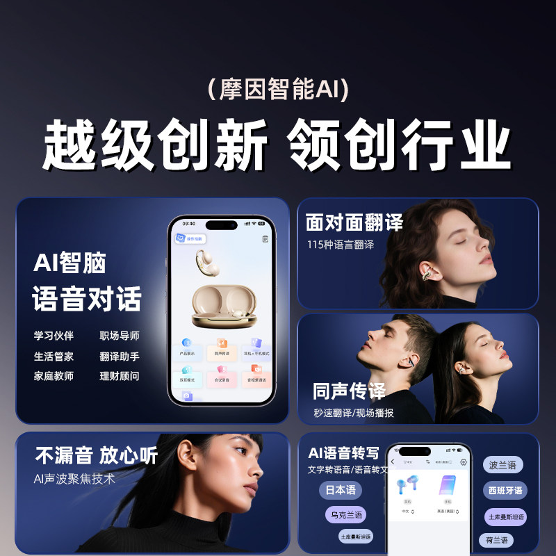 摩因Q8蓝牙耳机政府补贴2026年爆款豆包AI翻译耳夹式耳机无线运动