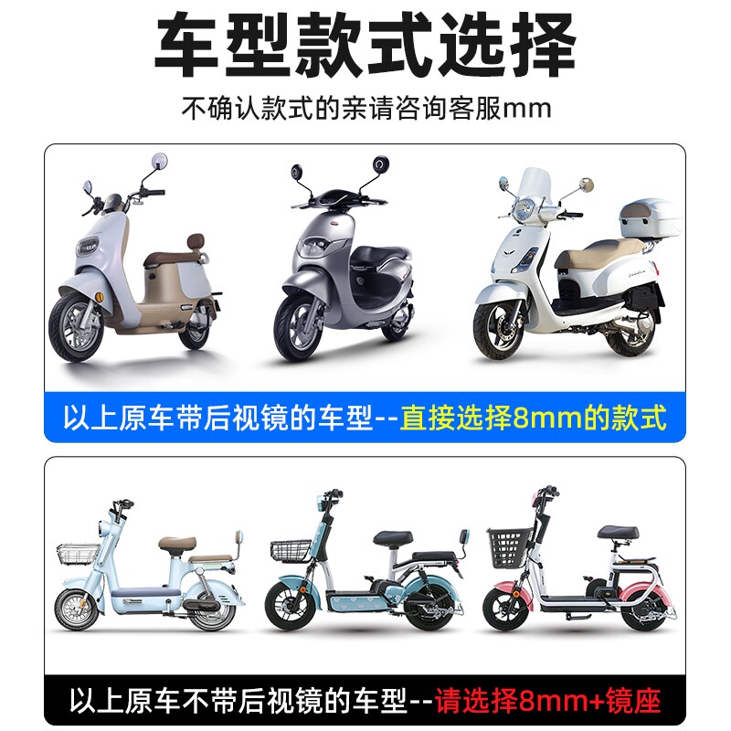 电动车后视镜子踏板摩托车反光镜三轮适用雅迪爱玛自行车倒车镜子