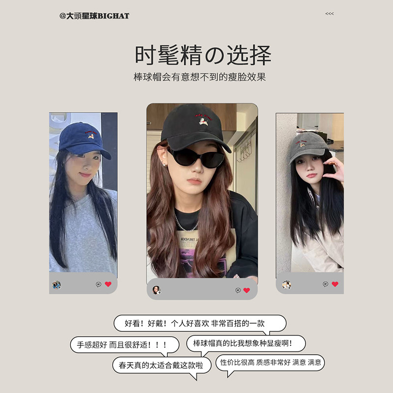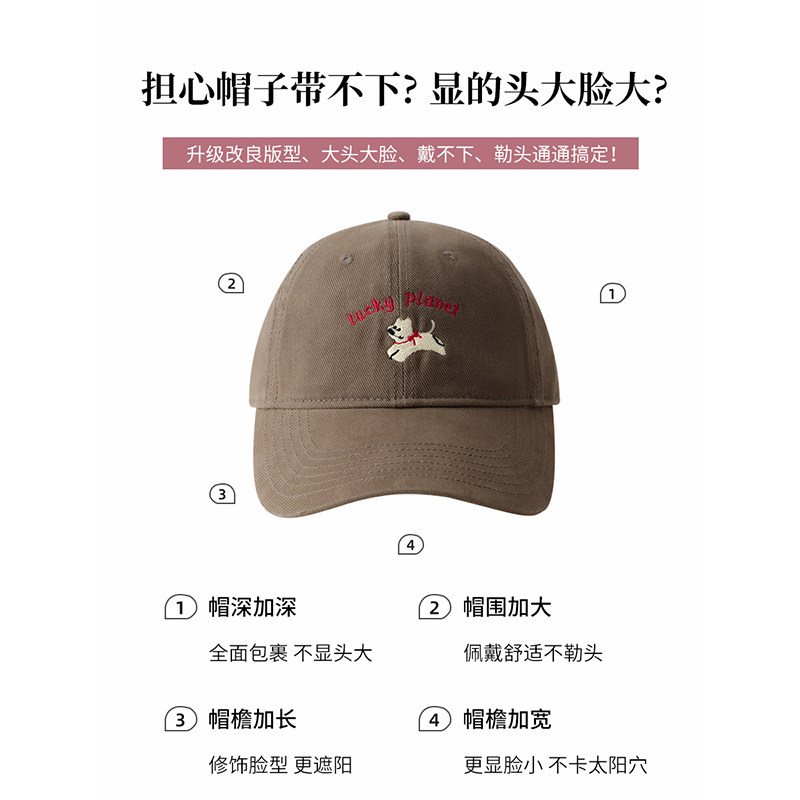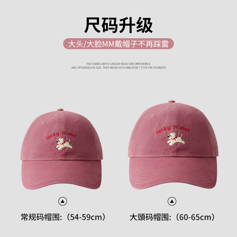 大头星球大头围腊肠狗刺绣鸭舌帽加深显脸小新款棒球帽子圆脸软顶