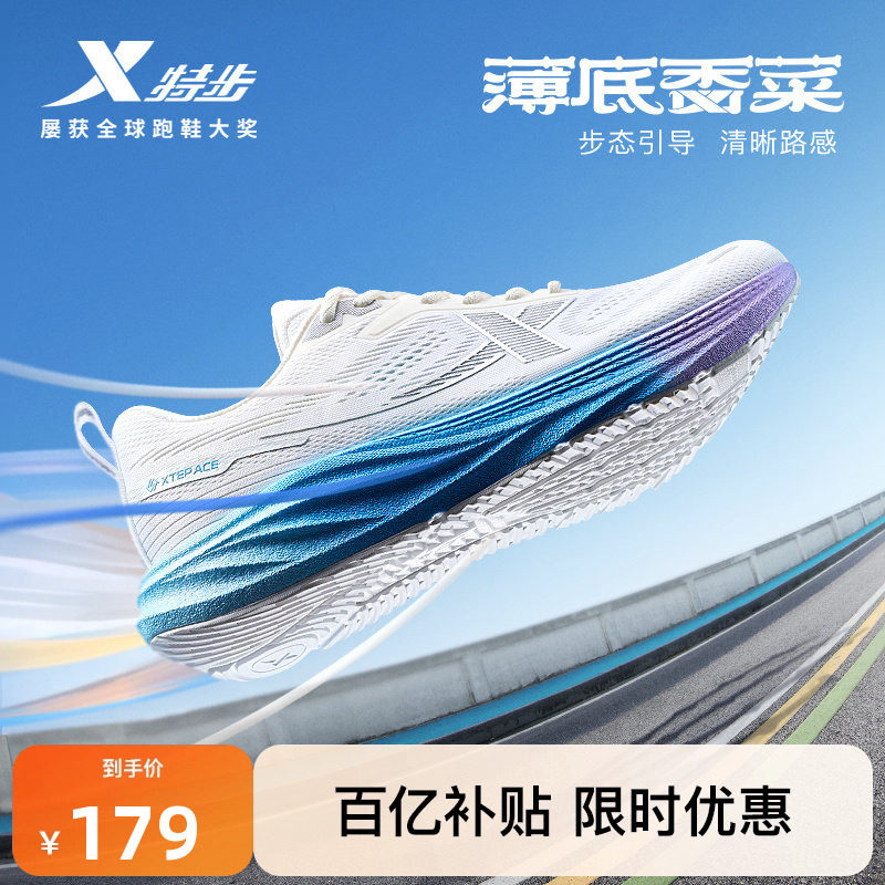 特步薄底香菜丨跑鞋男鞋秋冬网面运动鞋子减震耐磨跑步鞋女低坡差
