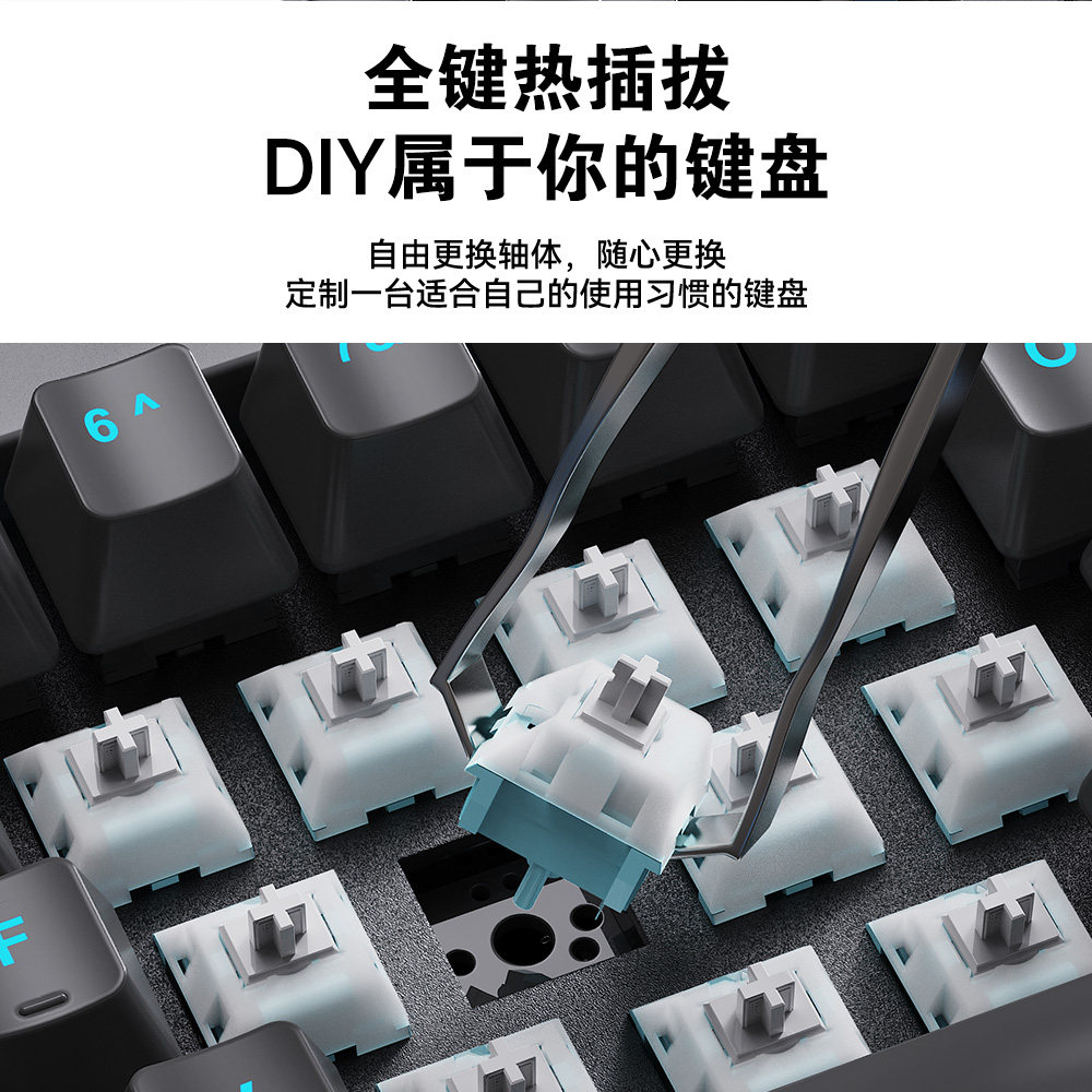 三模机械键盘 热插拔客制化海蓝轴