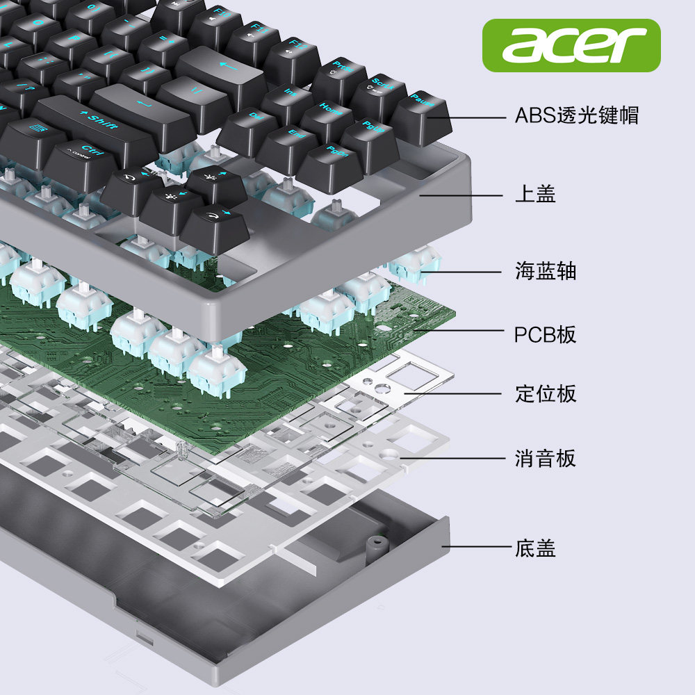 宏碁87机械键盘三模热插拔海蓝轴电竞客制化游戏办公蓝牙电脑通用