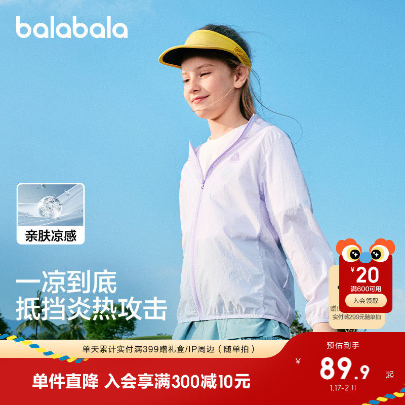 巴拉巴拉童装儿童防晒衣男童外套女童2025夏装皮肤衣时尚百搭洋气