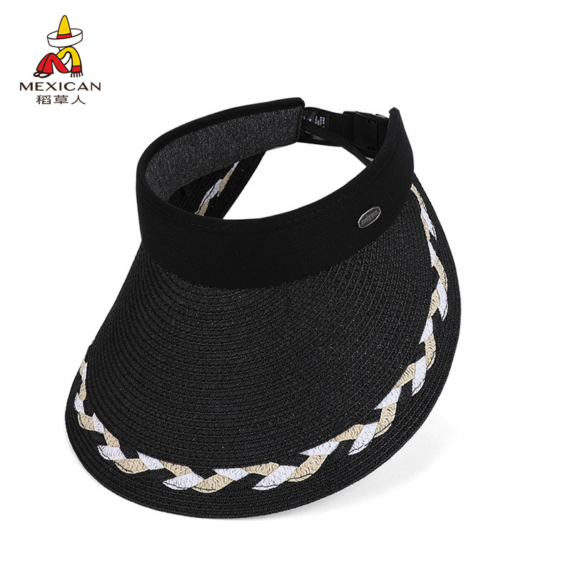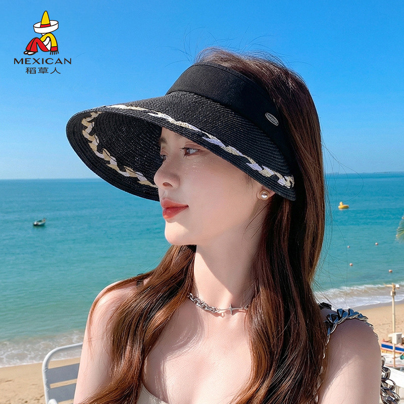 稻草人夏季女士空顶草帽大帽檐休闲防晒遮阳帽海边度假户外防嗮帽