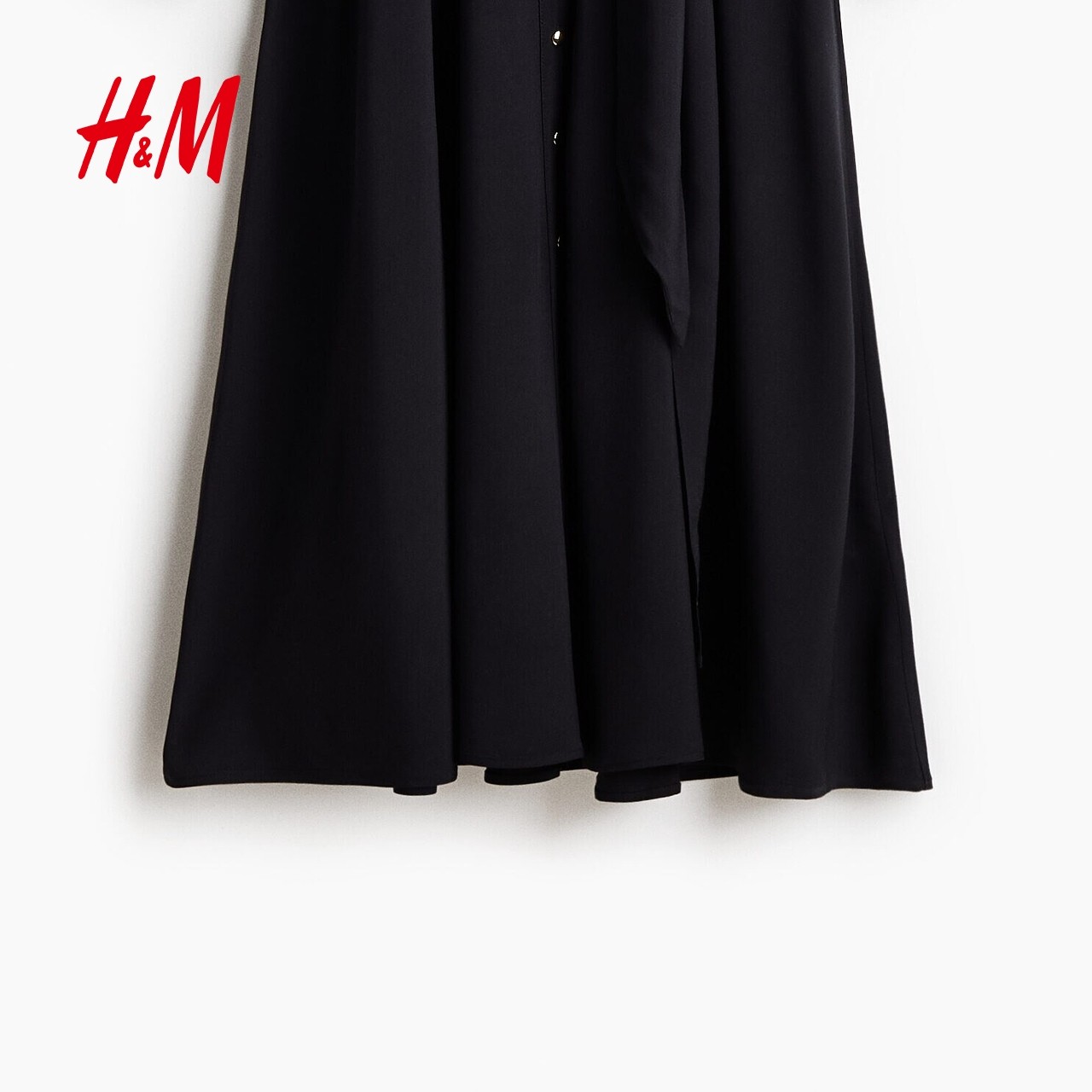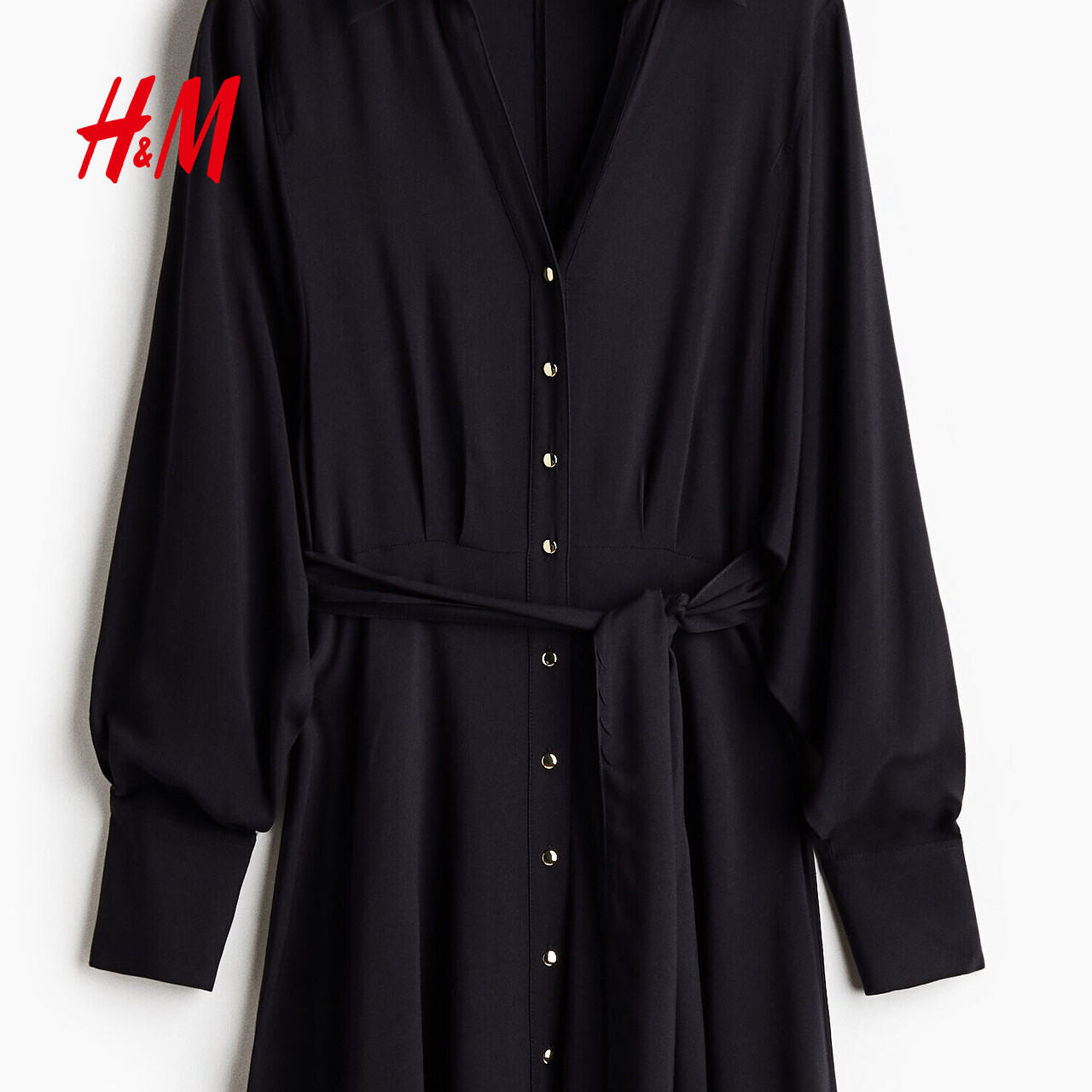 HM女装连衣裙2026春季新款衬衫式V领收腰长袖通勤连身裙1318835