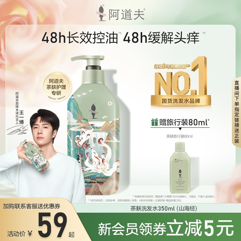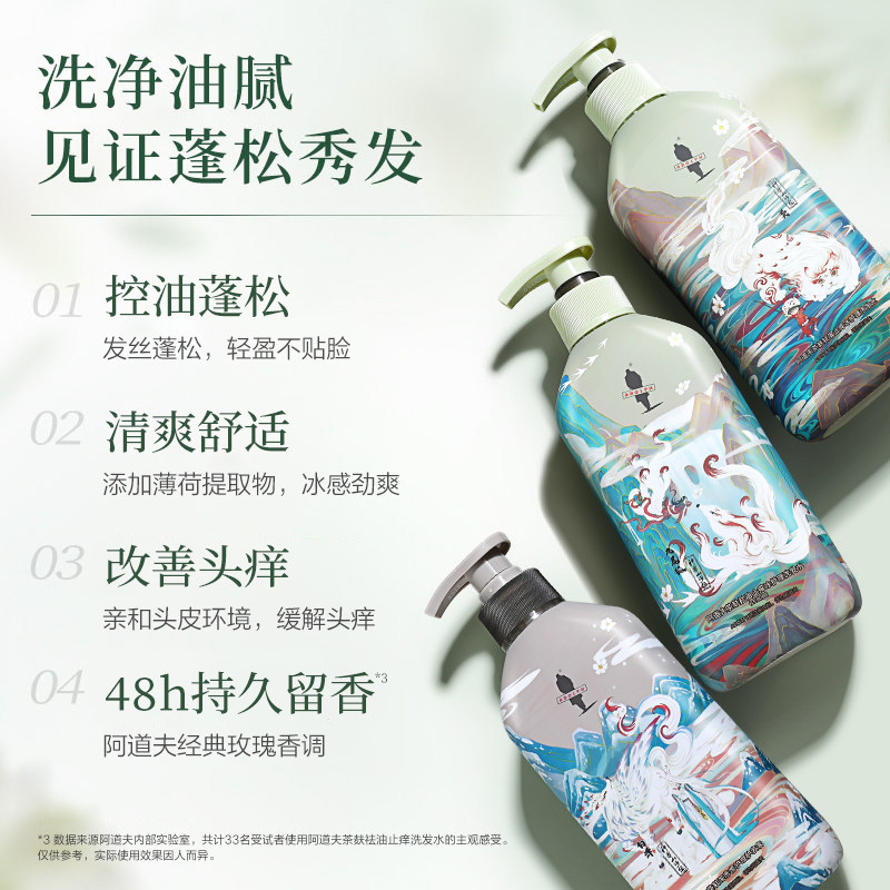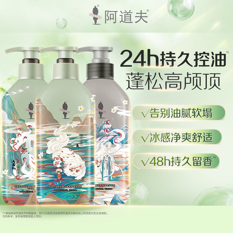 【王一博同款】阿道夫茶麸去屑止痒控油蓬松洗发水洗头膏男女品牌