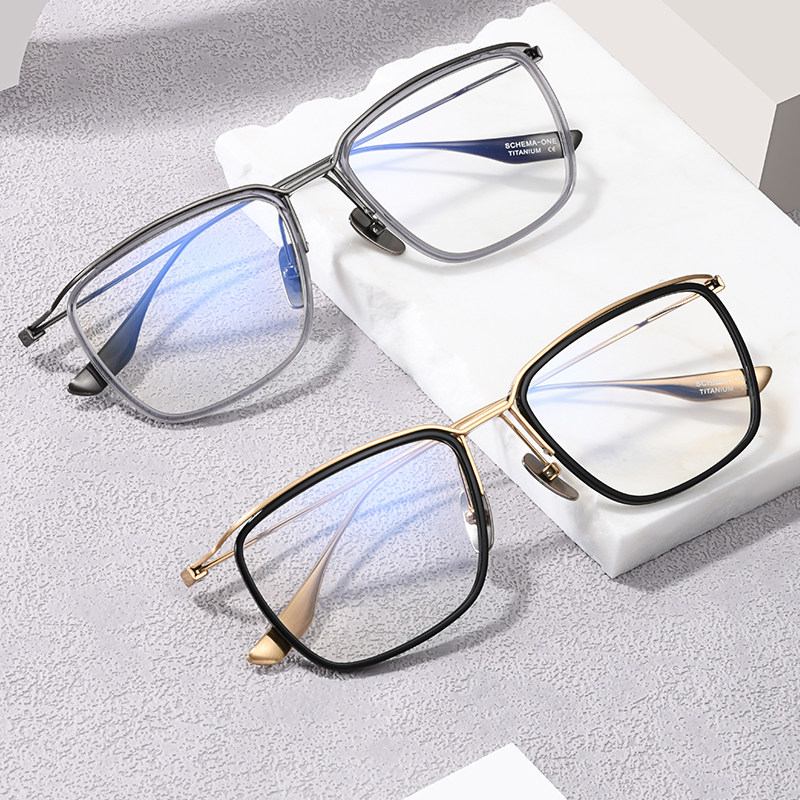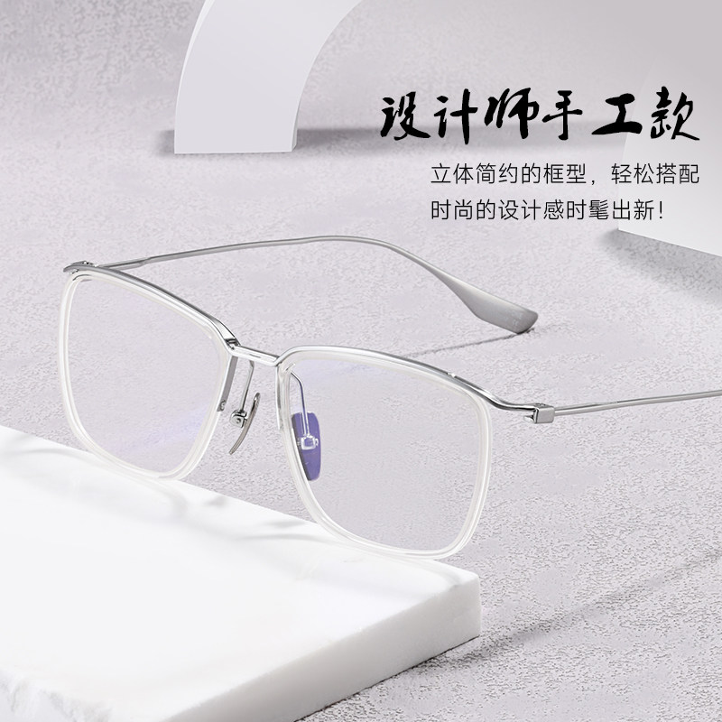 超轻钛架透明大框近视眼镜框DT106男潮复古日系手工设计师款配镜