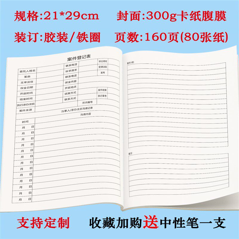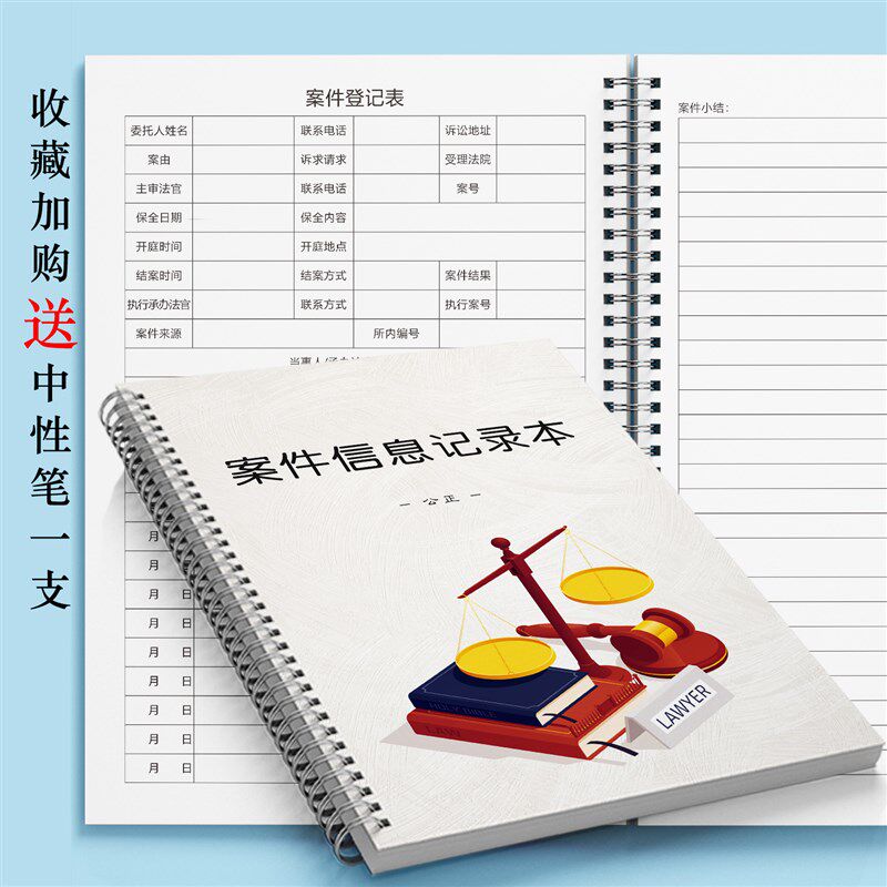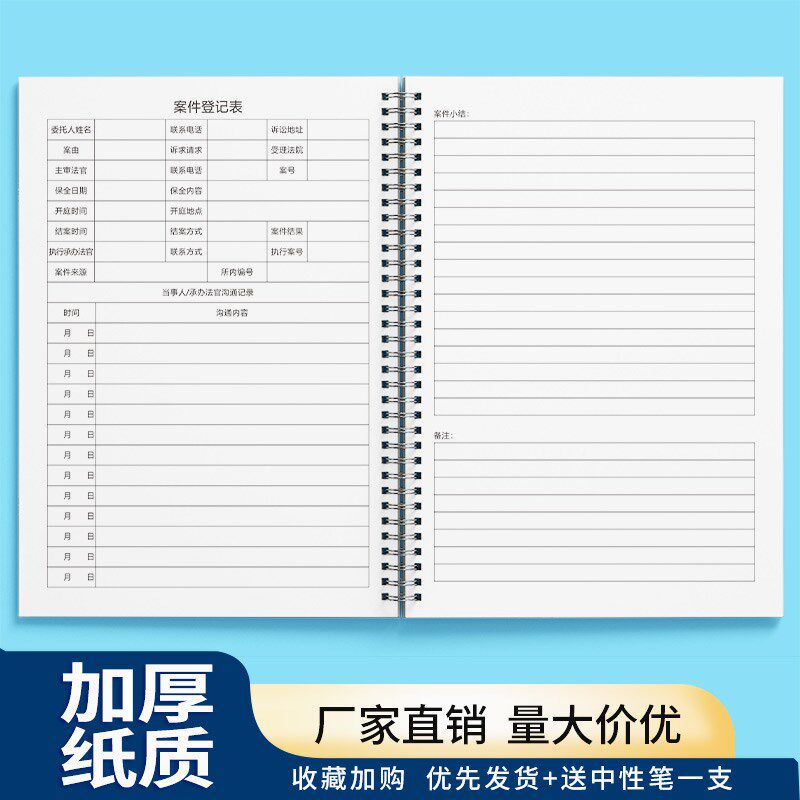 律师事务所律所案件记录本律师办案手记A4定制办公用品工作登记簿