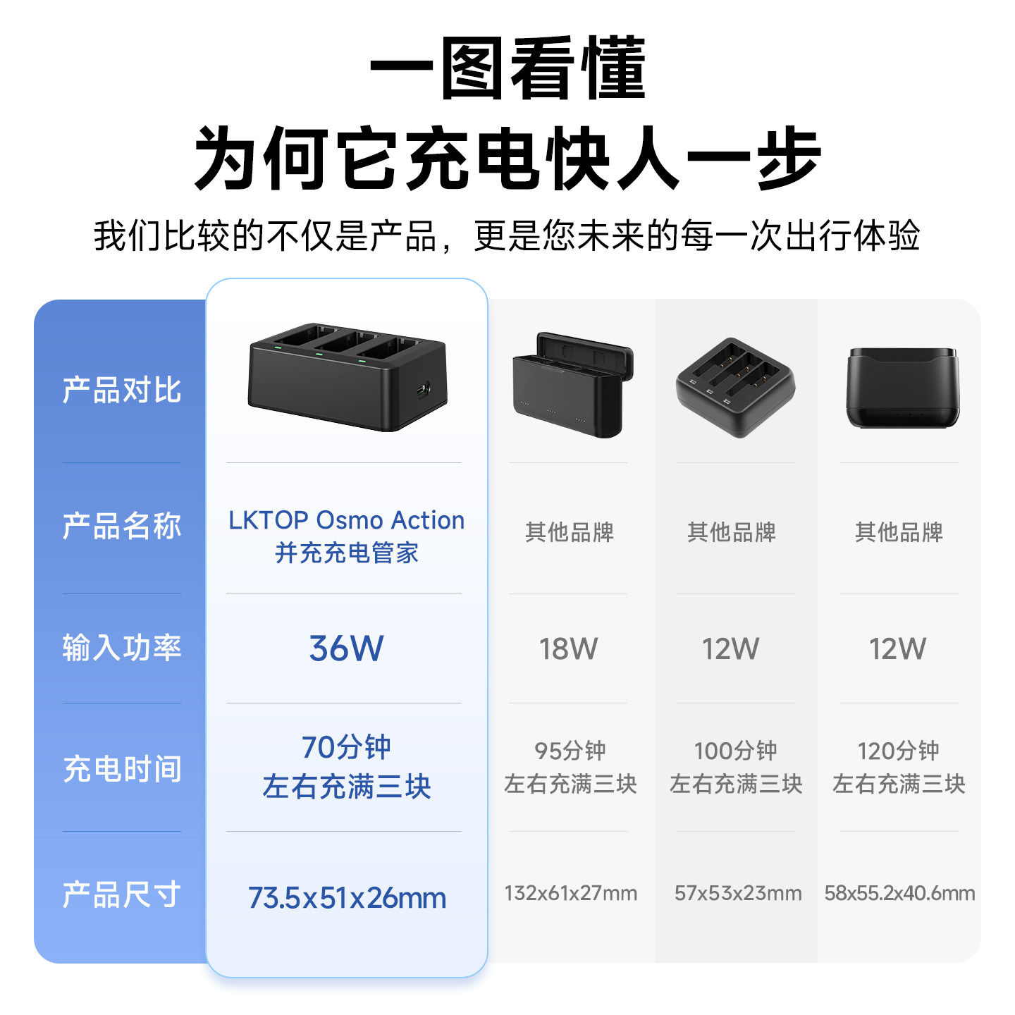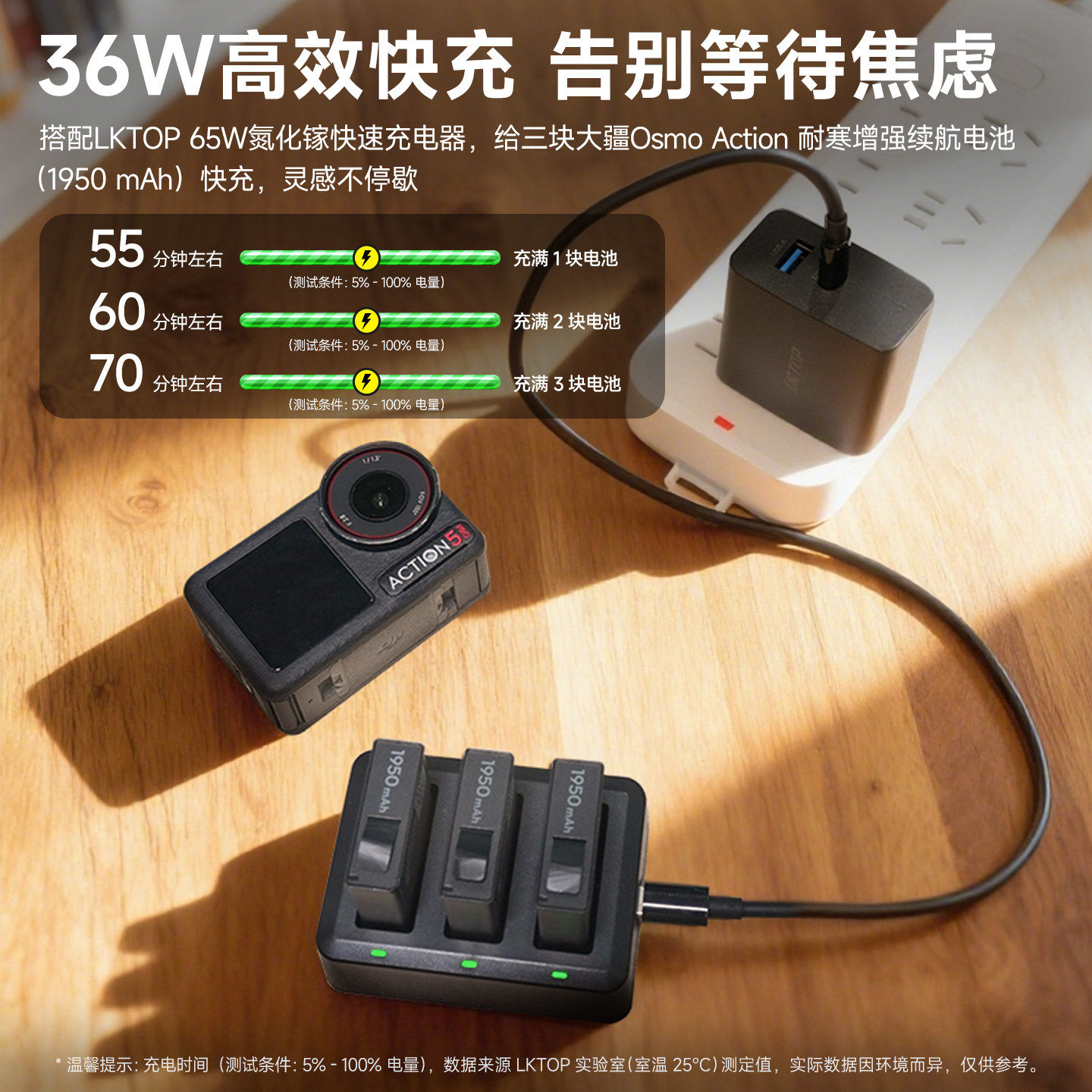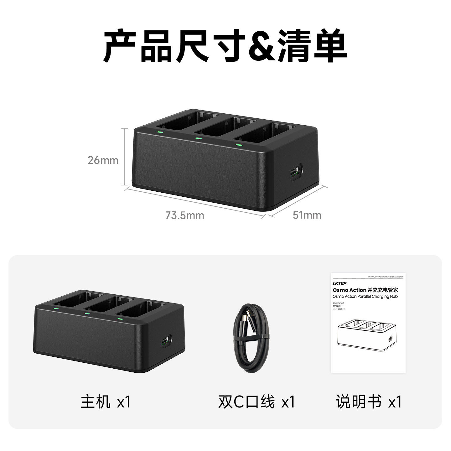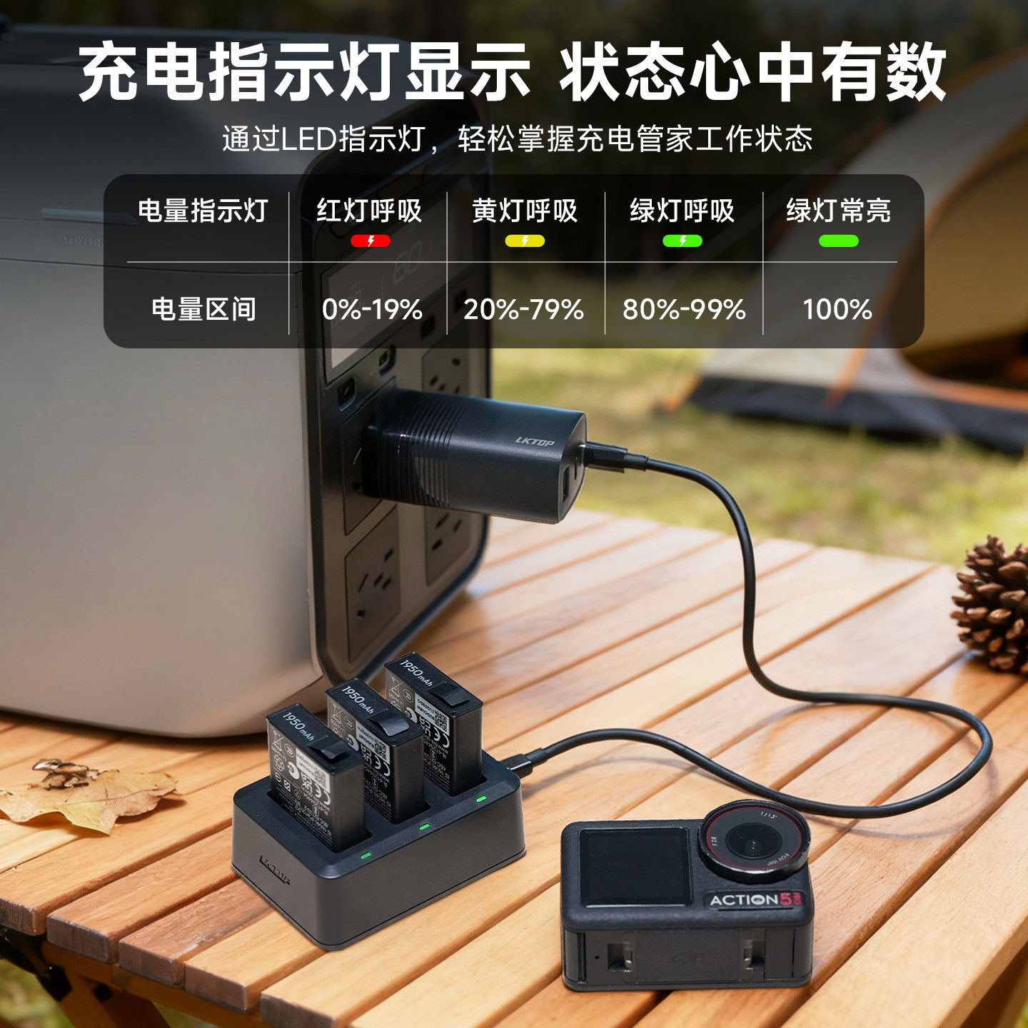 LKTOP立可拓适配大疆Action6电池充电器充电仓action5pro/4/3充电盒osmo360大疆电池充电管家运动相机配件