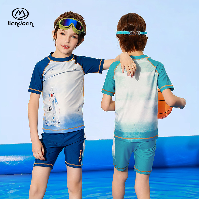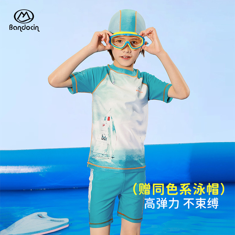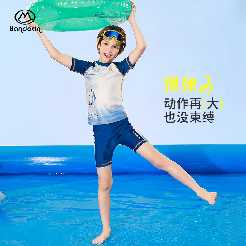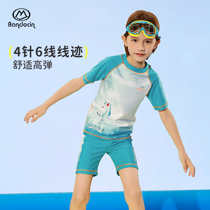 半度闲男童夏季泳衣2025新款儿童短袖分体游泳裤夏装男孩防晒泳装