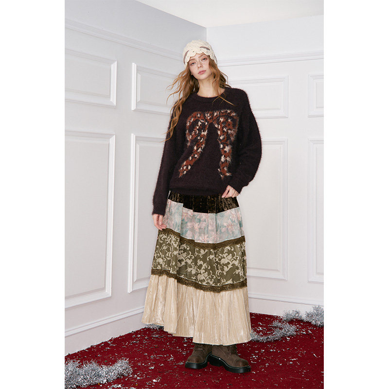 BANANA BABY2025年秋冬新款提花针织女日系碎花雪纺长款半身裙