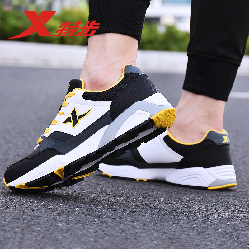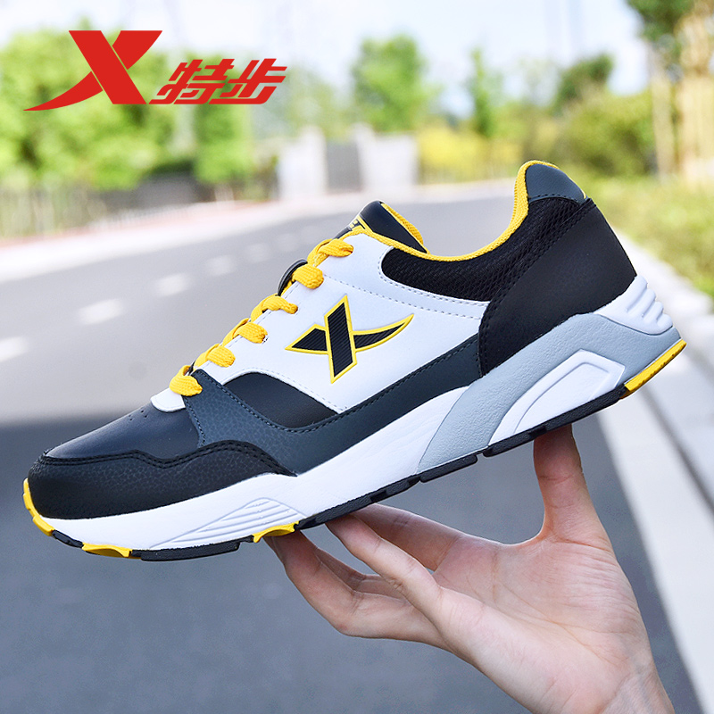 特步男鞋运动鞋男款秋冬减震跑鞋复古休闲鞋子男士皮面耐磨老爹鞋