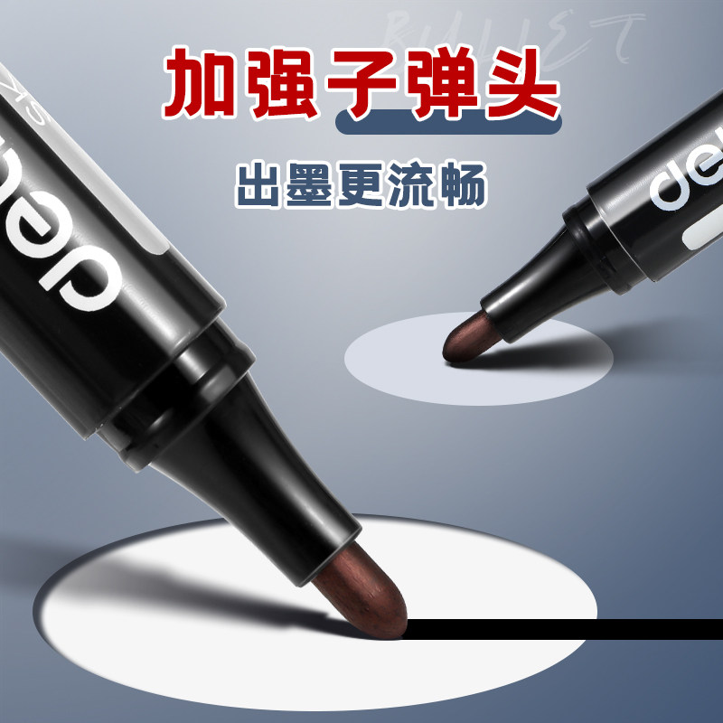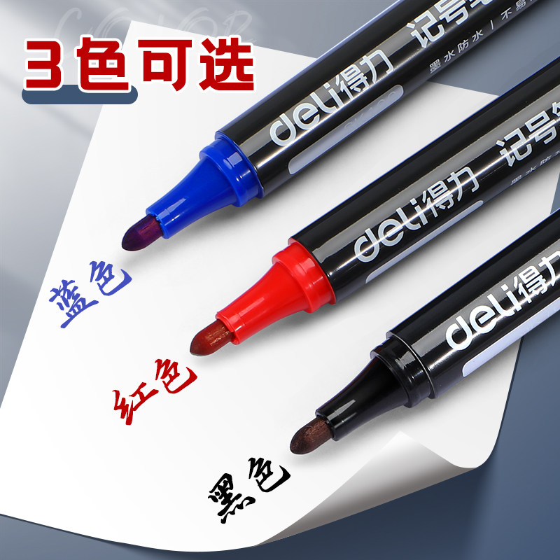 得力记号笔黑色防水防油不掉色记号笔油性大头笔粗签字笔工地马克笔勾线笔美术专用小学生红色蓝色速干快递笔