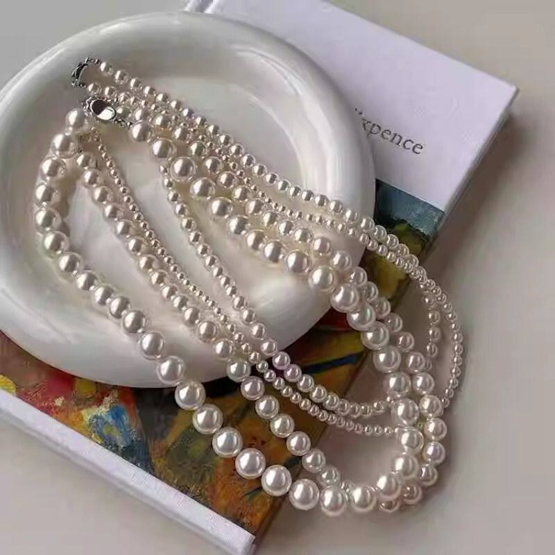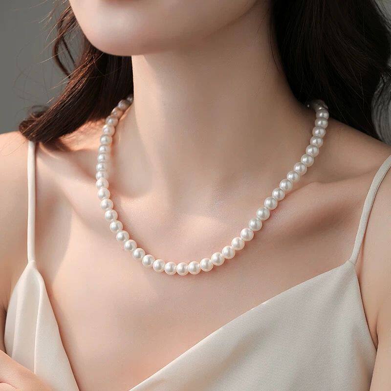 冷光澳白色珍珠项链女正圆锁骨链轻奢高级感人造气质颈链不掉色