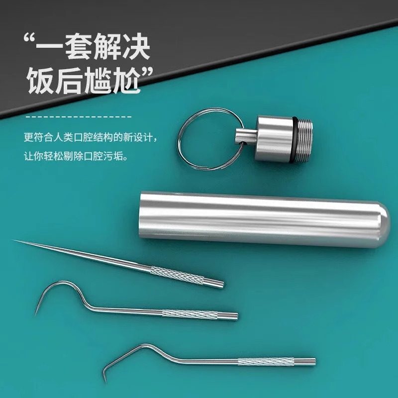 304不锈钢牙签线剔牙神器便携随身挑牙线棒工具抠掏牙缝套装金属
