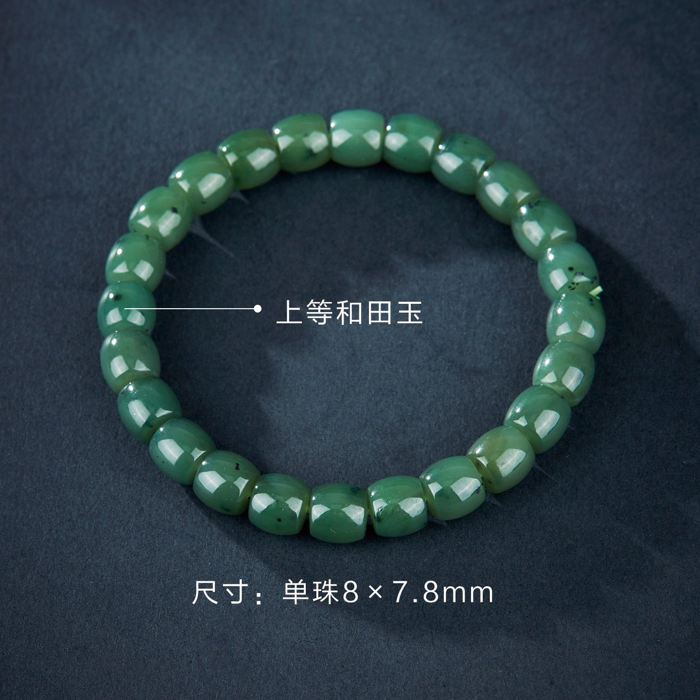 七彩云南天然和田玉碧玉手串绿色玉石桶珠手链软玉手饰简约礼物