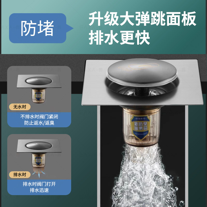 卫生间地漏防臭器弹跳芯密封盖下水道防返臭虫神器通用按压脚踩式