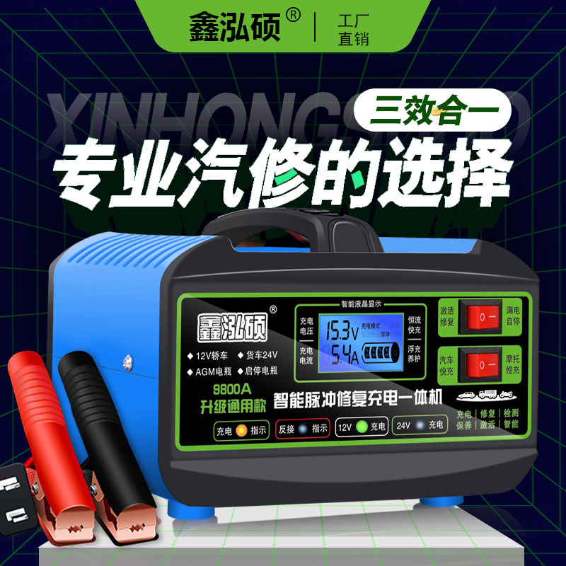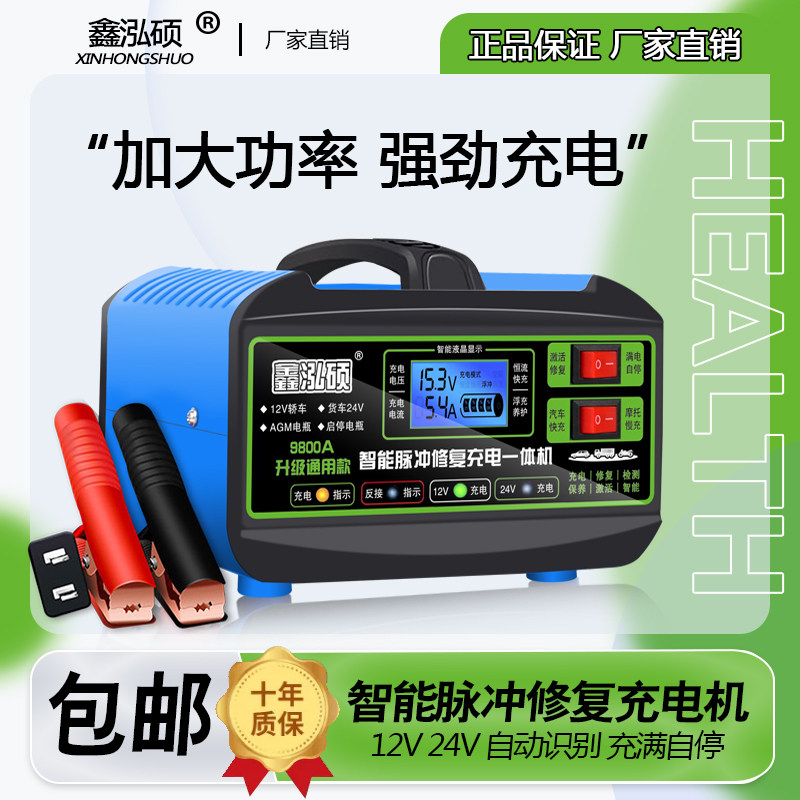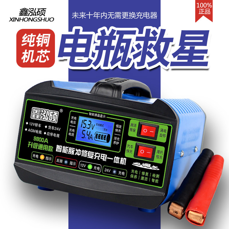 汽车电瓶充电器12V24V摩托车蓄电池纯铜全智能修复型自动充电机