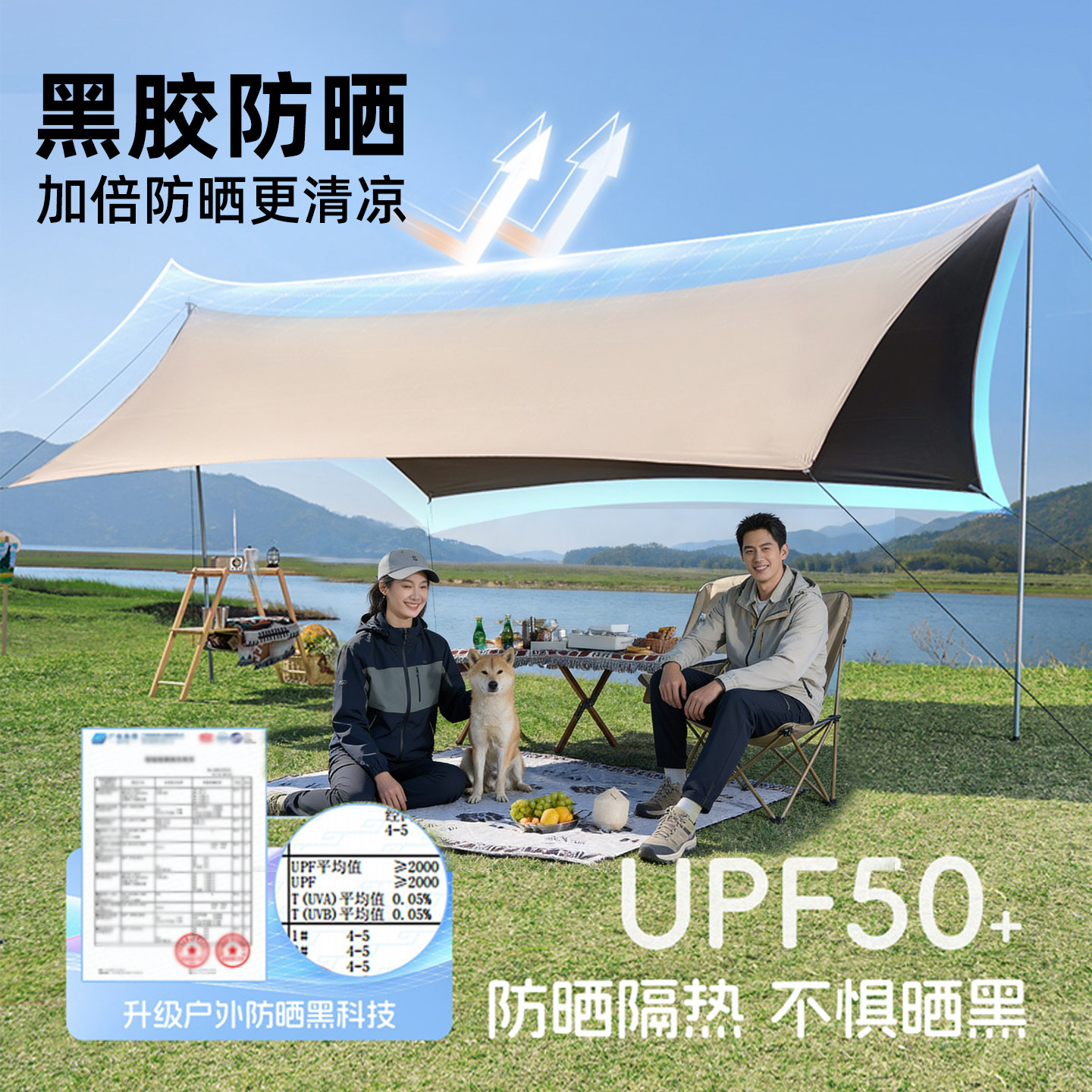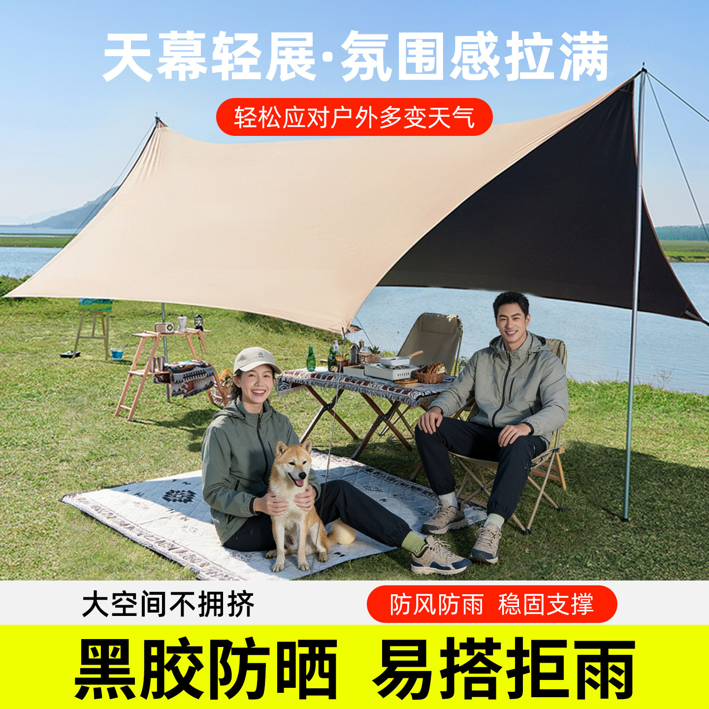 黑胶天幕帐篷户外加厚露营天幕免搭建防晒防雨遮阳棚便携野营装备