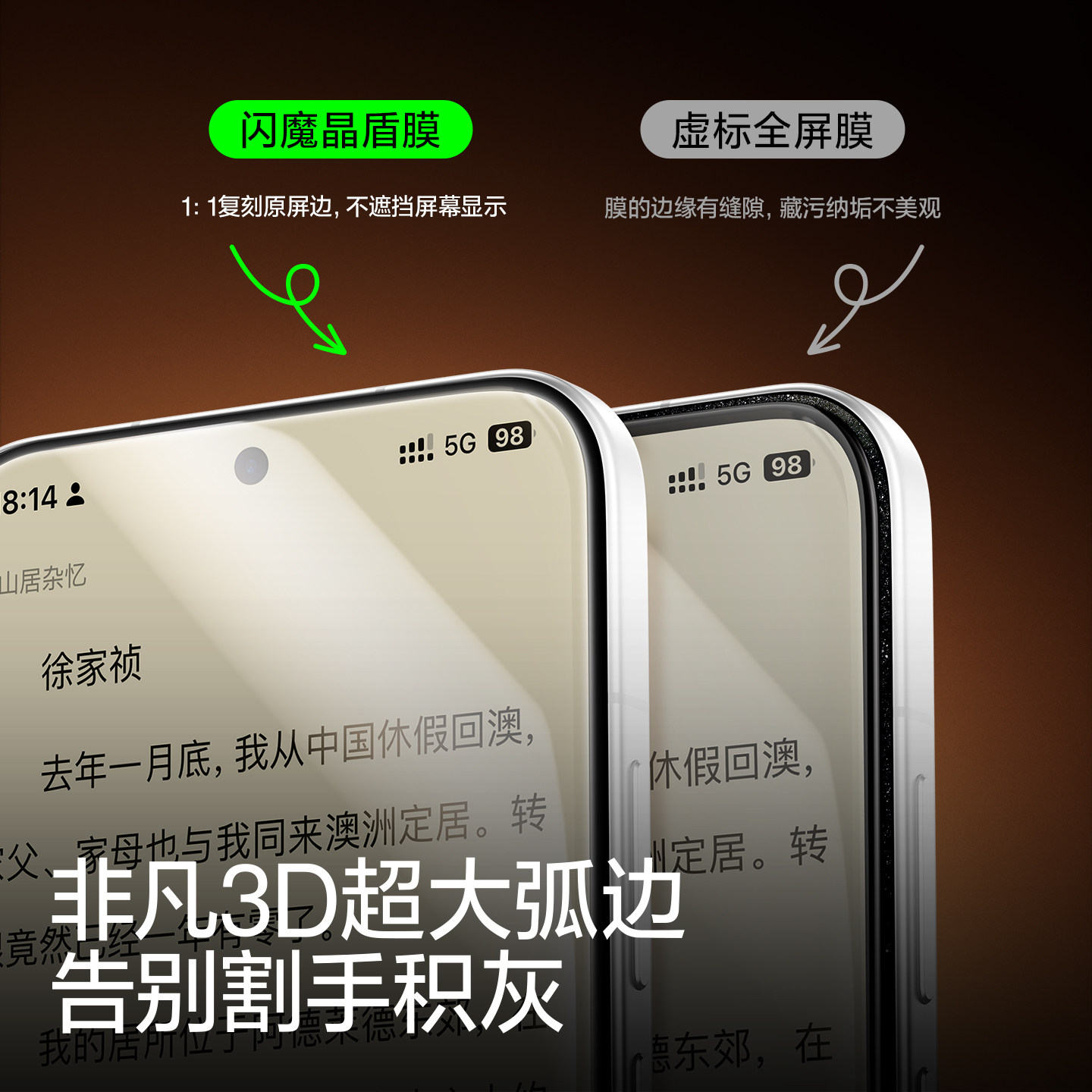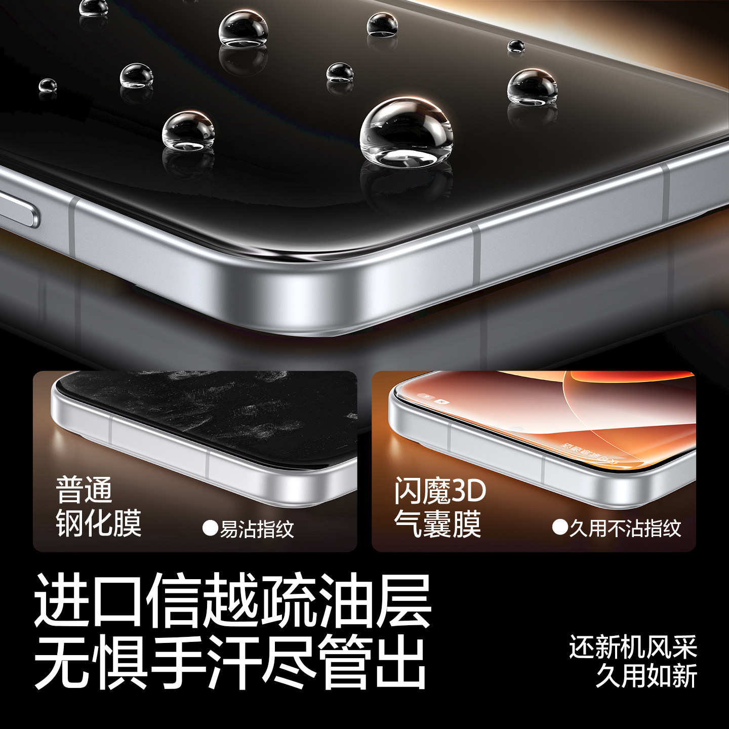 闪魔小魔盒适用iPhone16ProMax钢化膜16e苹果15pro无黑边13 promax无尘仓屏幕14plus全屏覆盖12手机保护贴膜