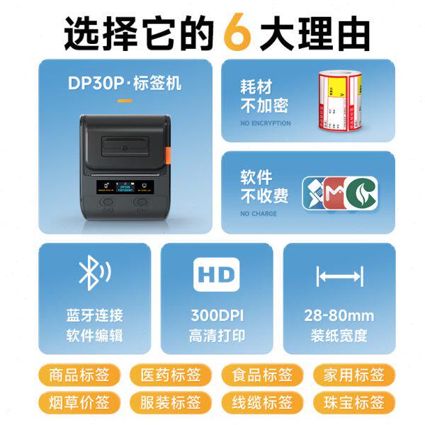 DP30P高清大尺寸标签打印机食品烘焙配料表仓库箱唛货架商品服装