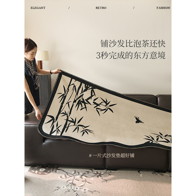 蜡笔派浮光竹影异形沙发坐垫中式复古夏季四季通用防滑坐垫P