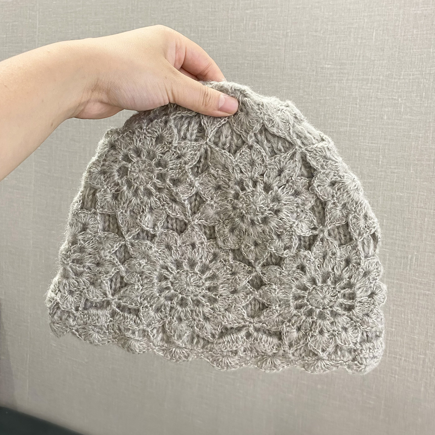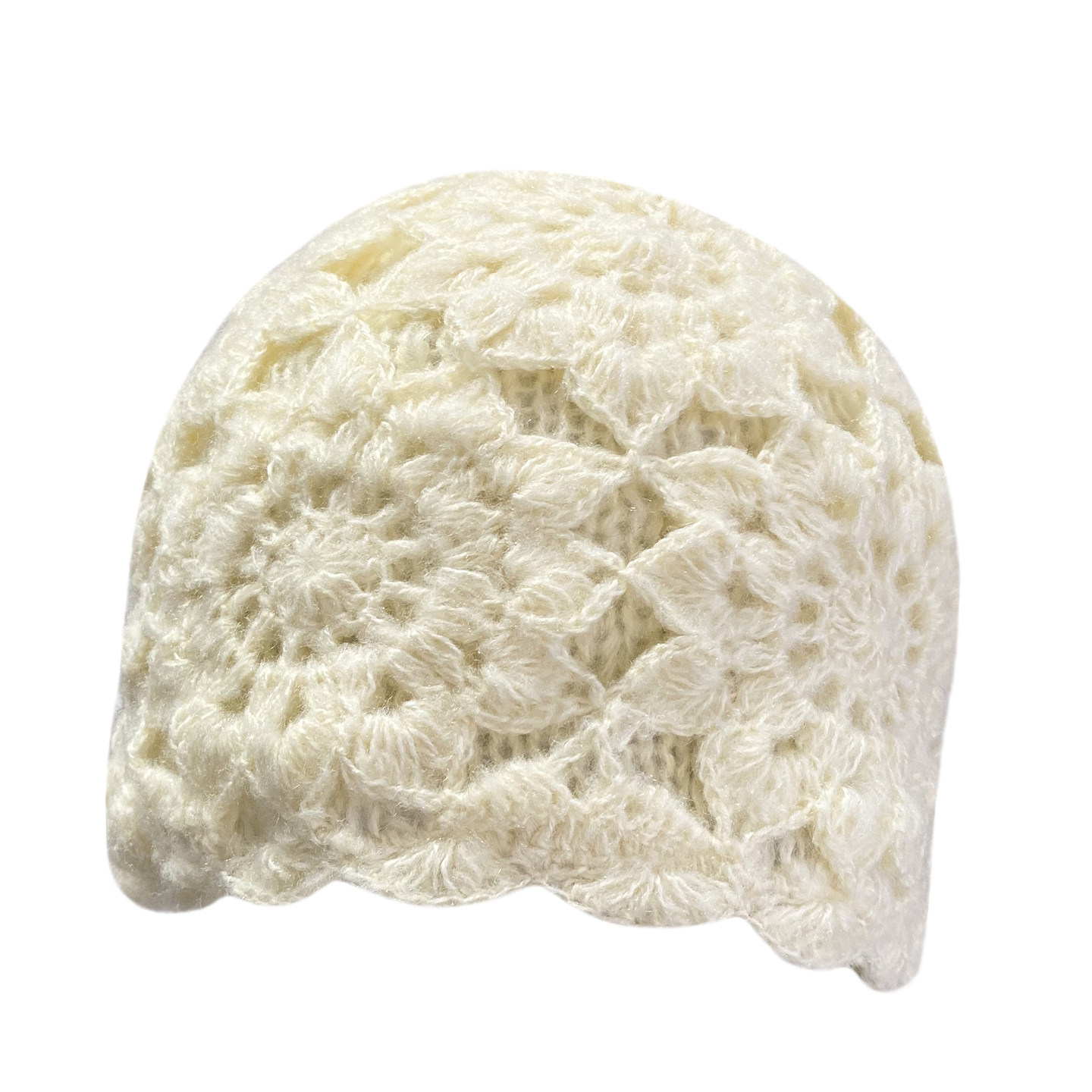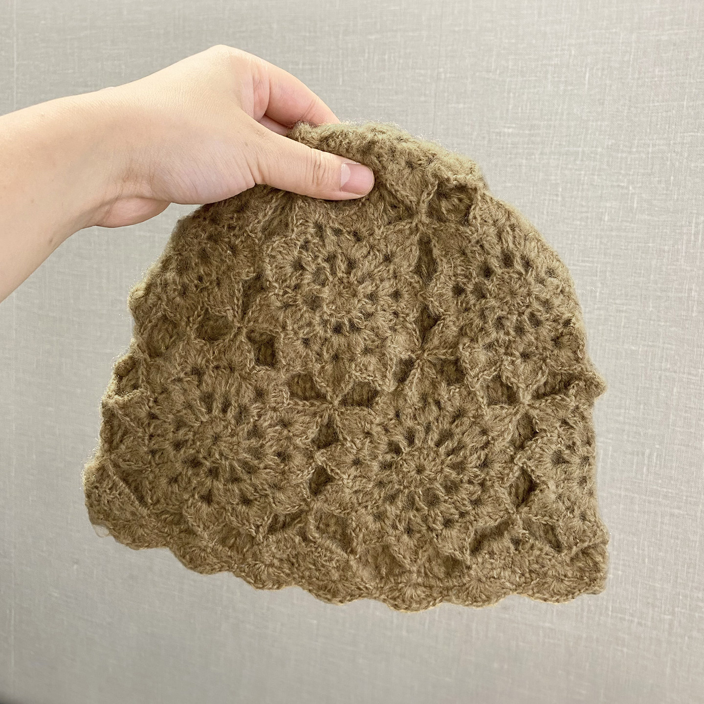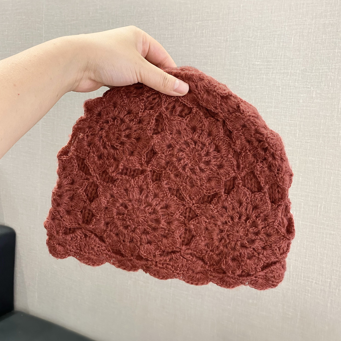 秋冬季新款手工钩花包头帽女保暖百搭双层针织套头帽显脸小毛线帽