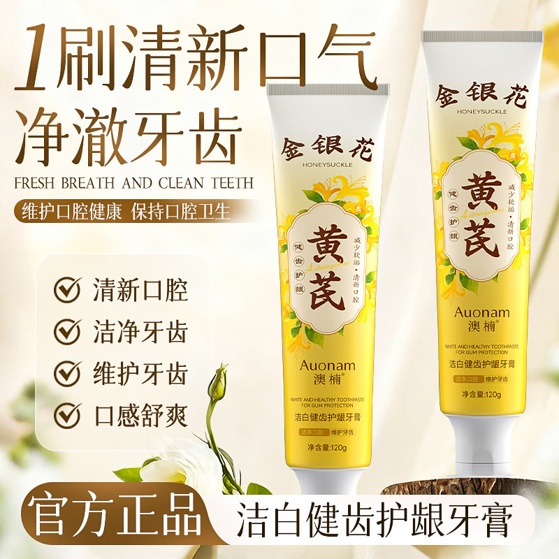 黄芪金银花牙膏去口臭除异味口气清新美白去牙渍正品牙齿国货去渍