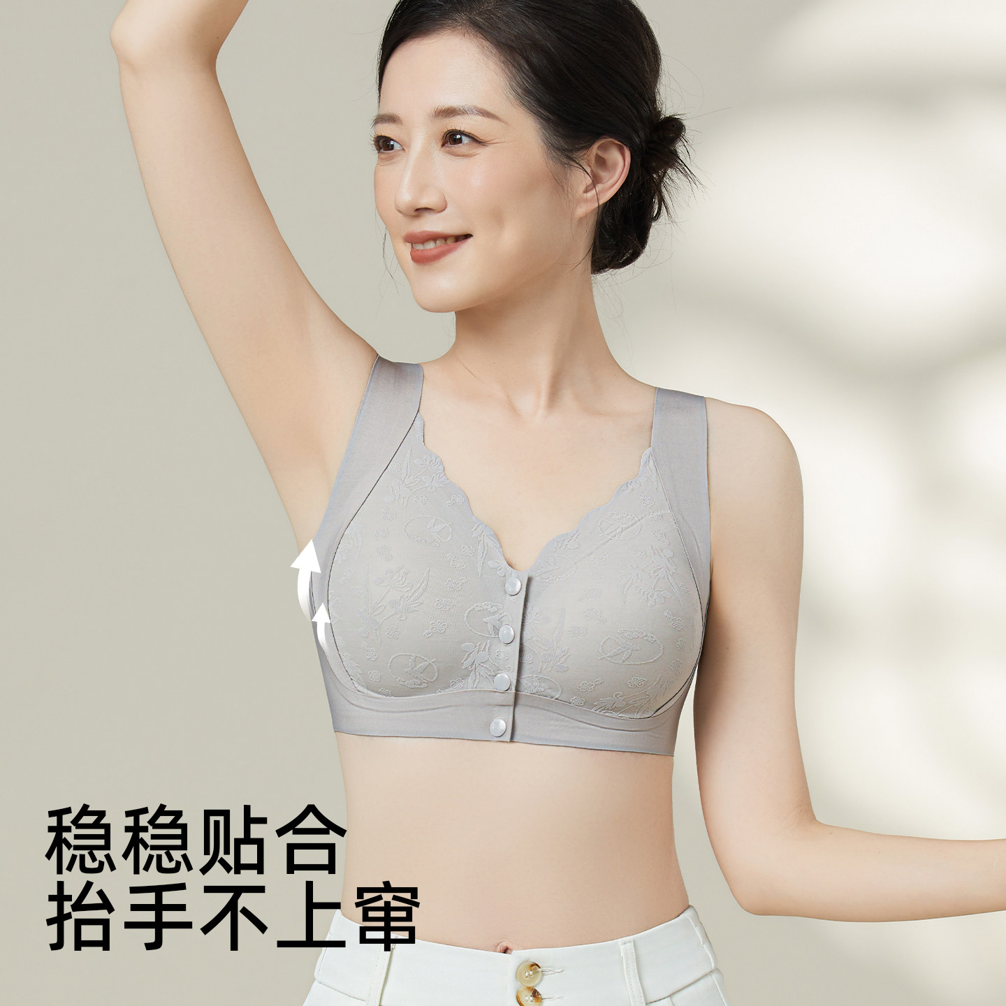 古今妈妈内衣国风前扣聚拢防下垂中老年专用薄款大码无钢圈文胸罩